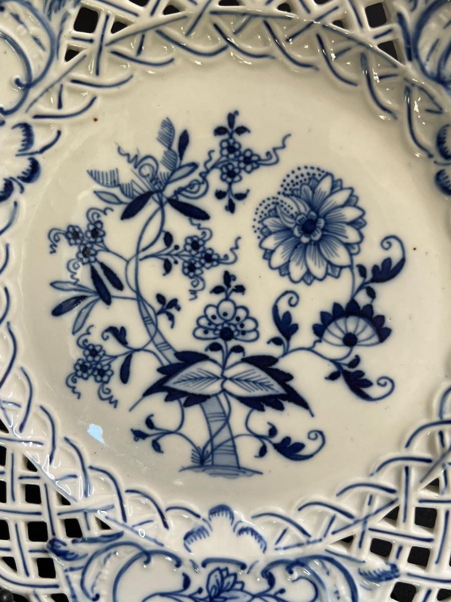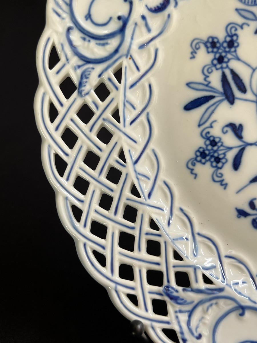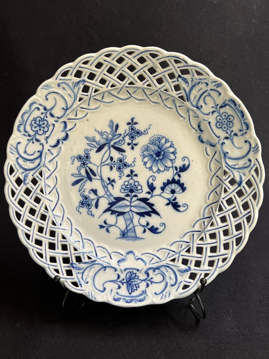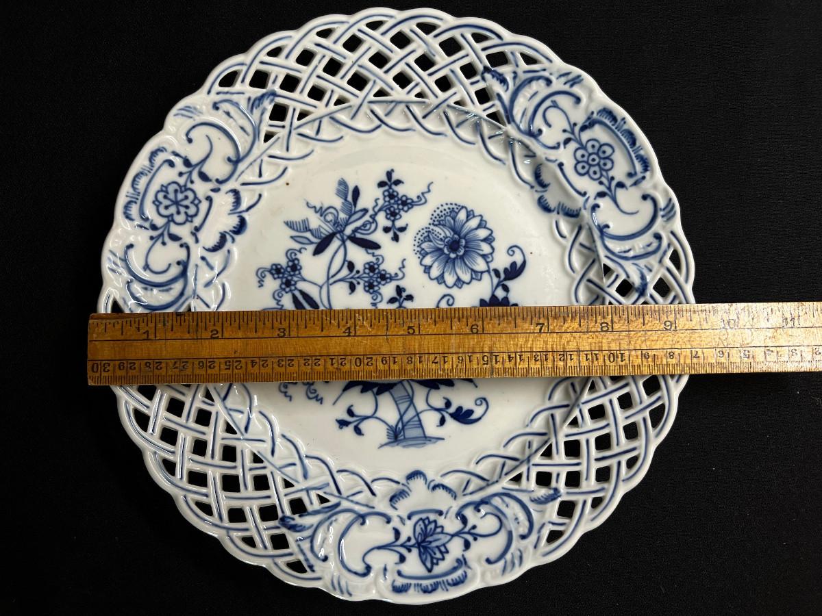 Beautiful Marked Meissen Antique Blue Onion Porcelain Plate with Piercing