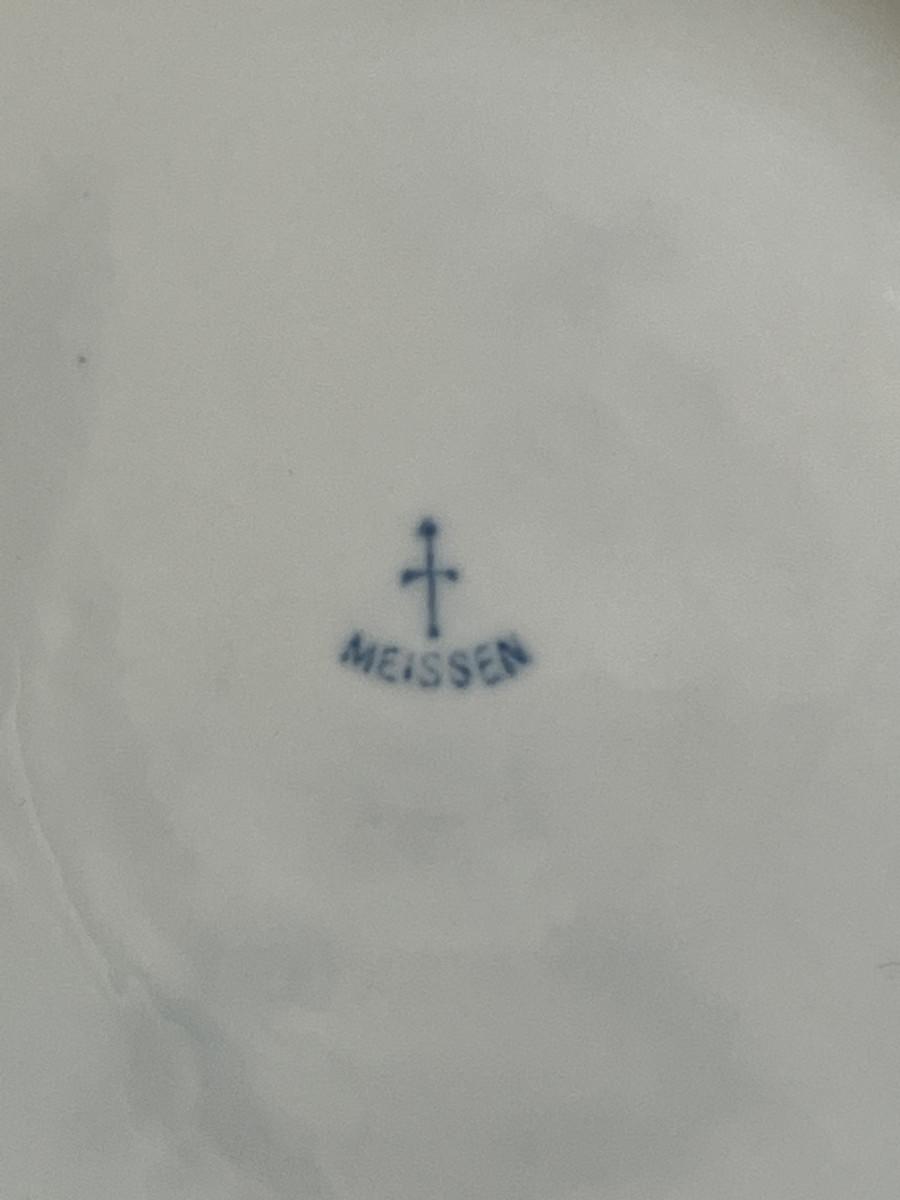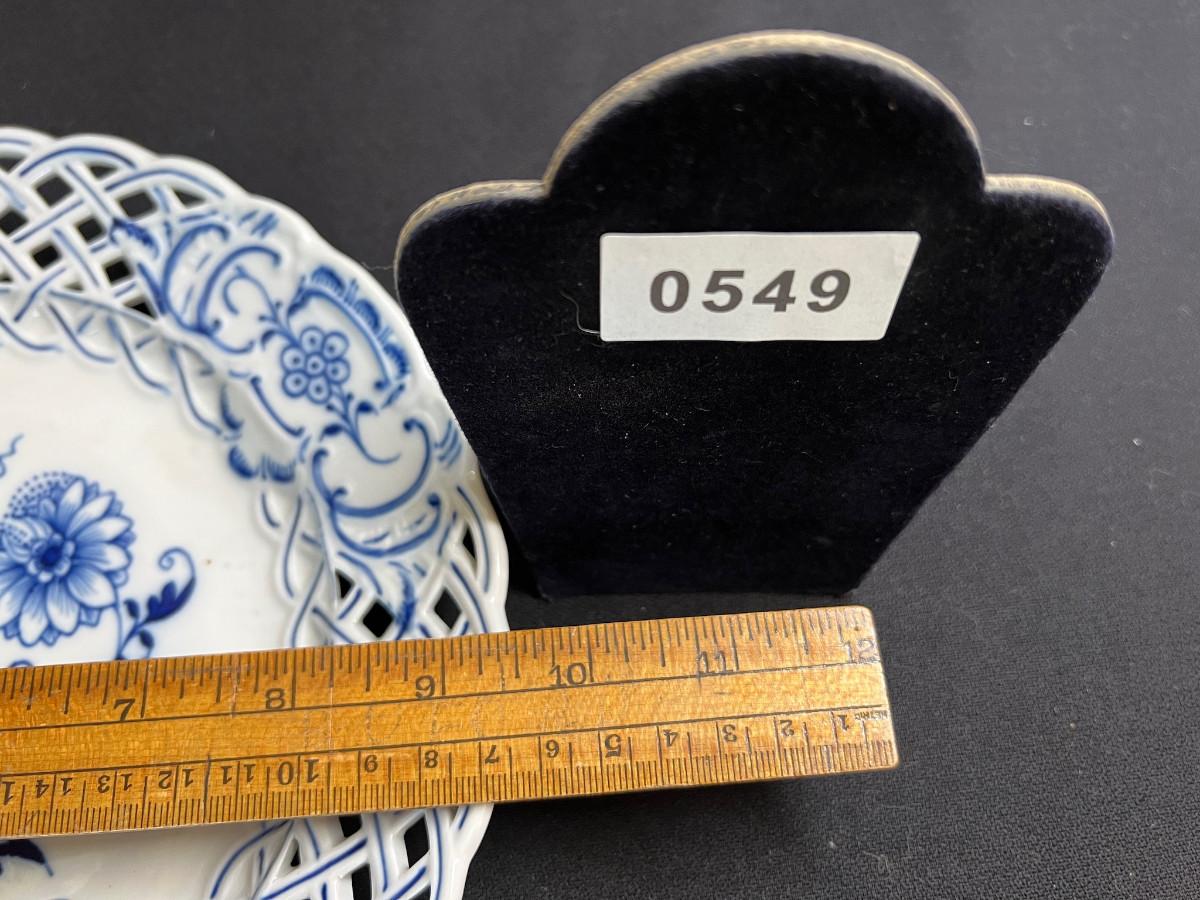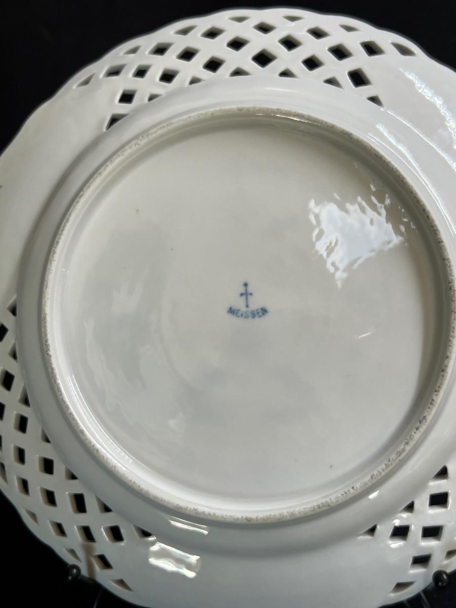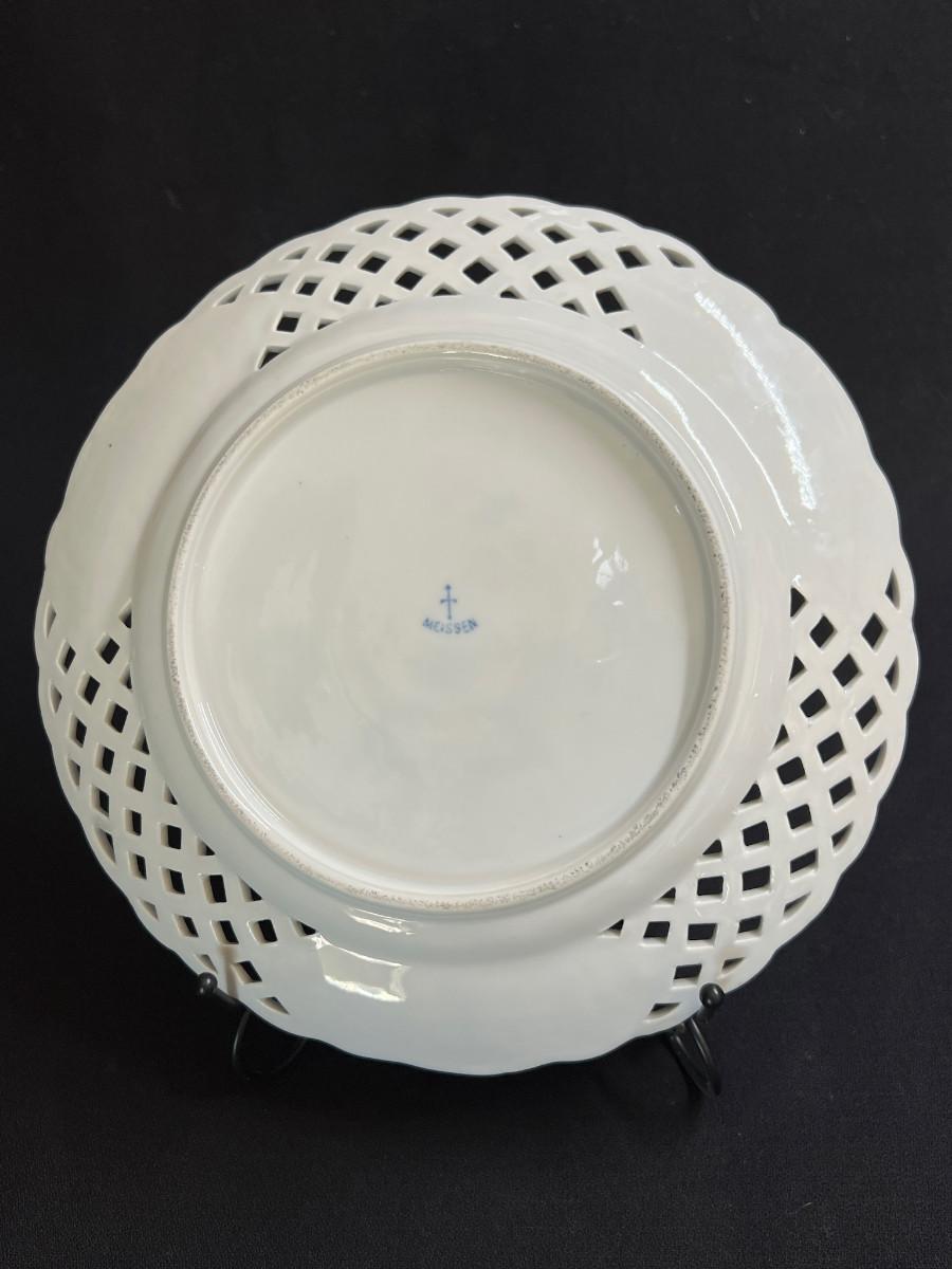 Beautiful Marked Meissen Antique Blue Onion Porcelain Plate with Piercing