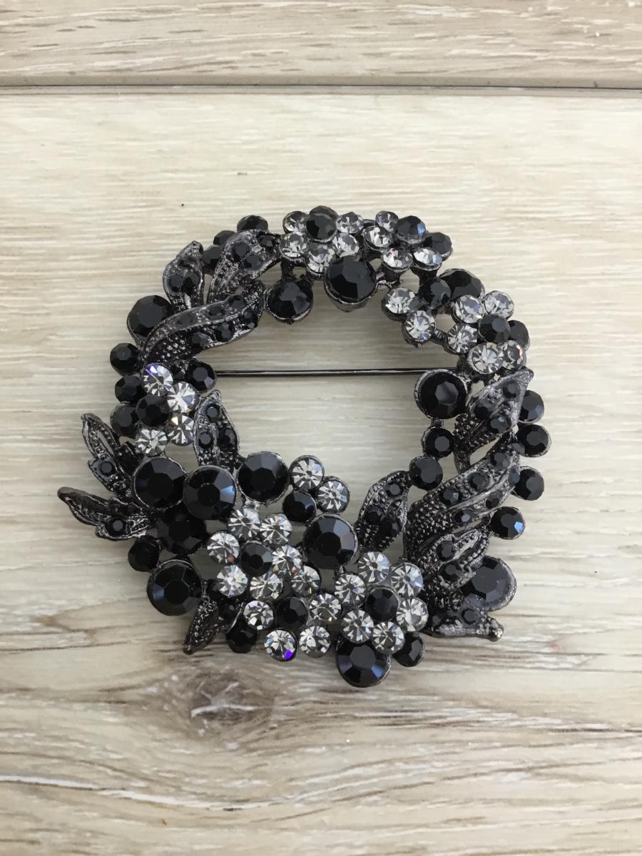 Beautiful mid century black Rhinestone flower wreath brooch