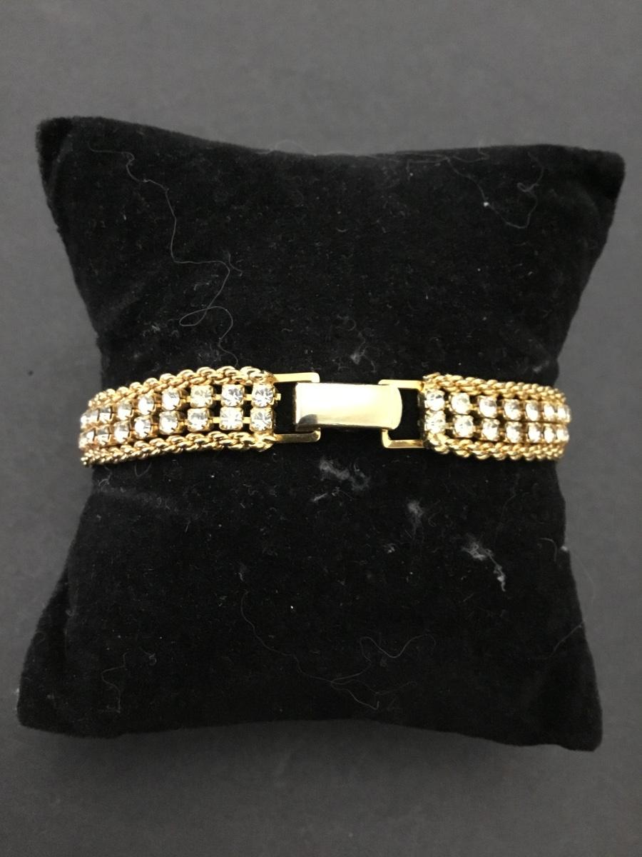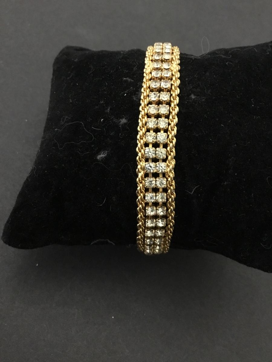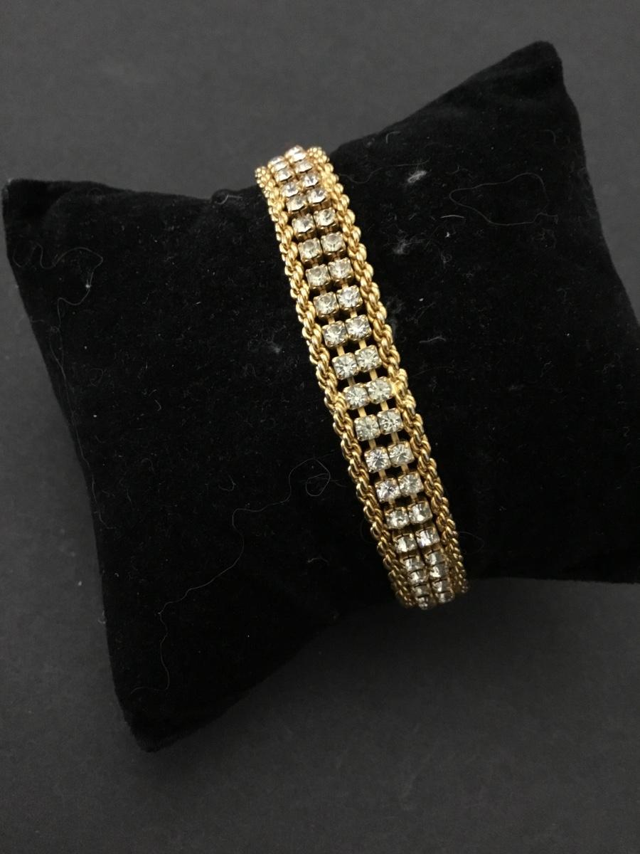 Beautiful, mid century, gold tone, rhinestone bracelet