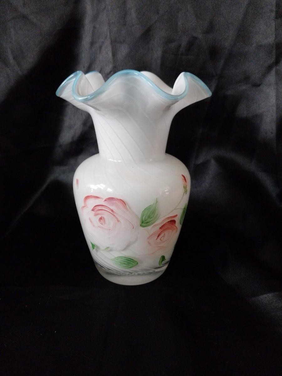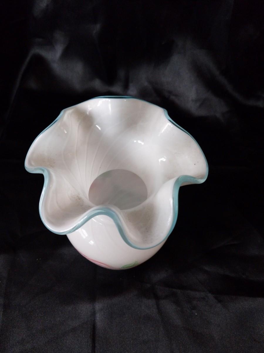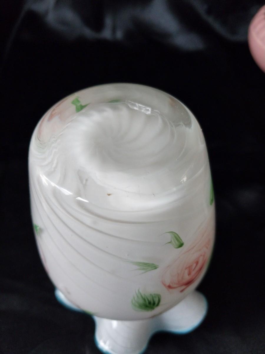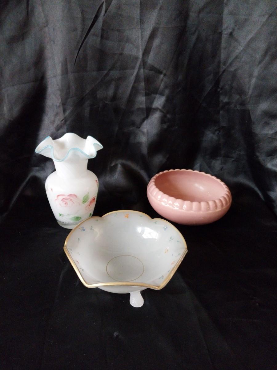 BEAUTIFUL MILKY GLASS VASE AND CANDY DISH SIGNED PINK DISH