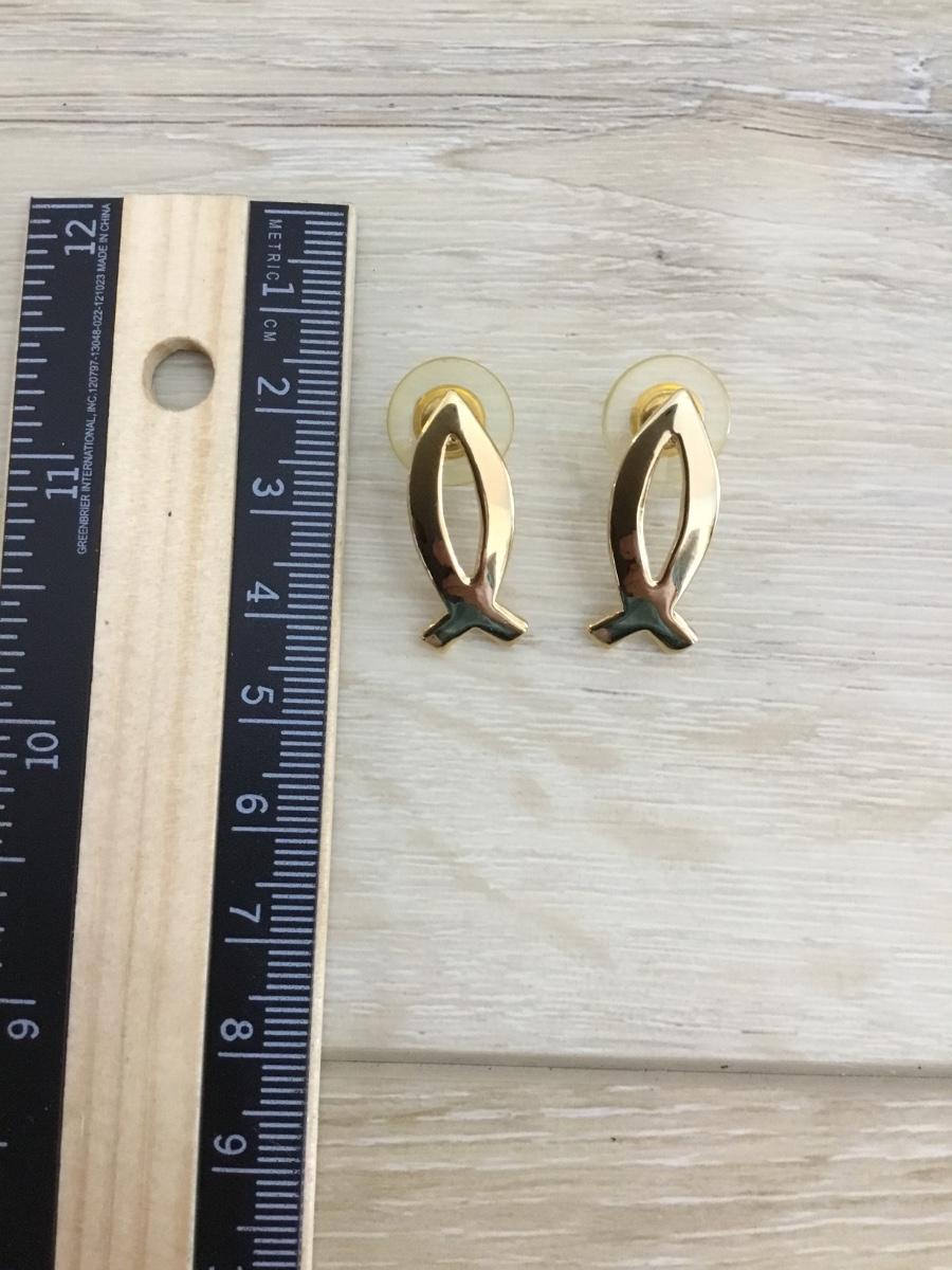 Beautiful MJ gold tone Christian fish stud earrings
