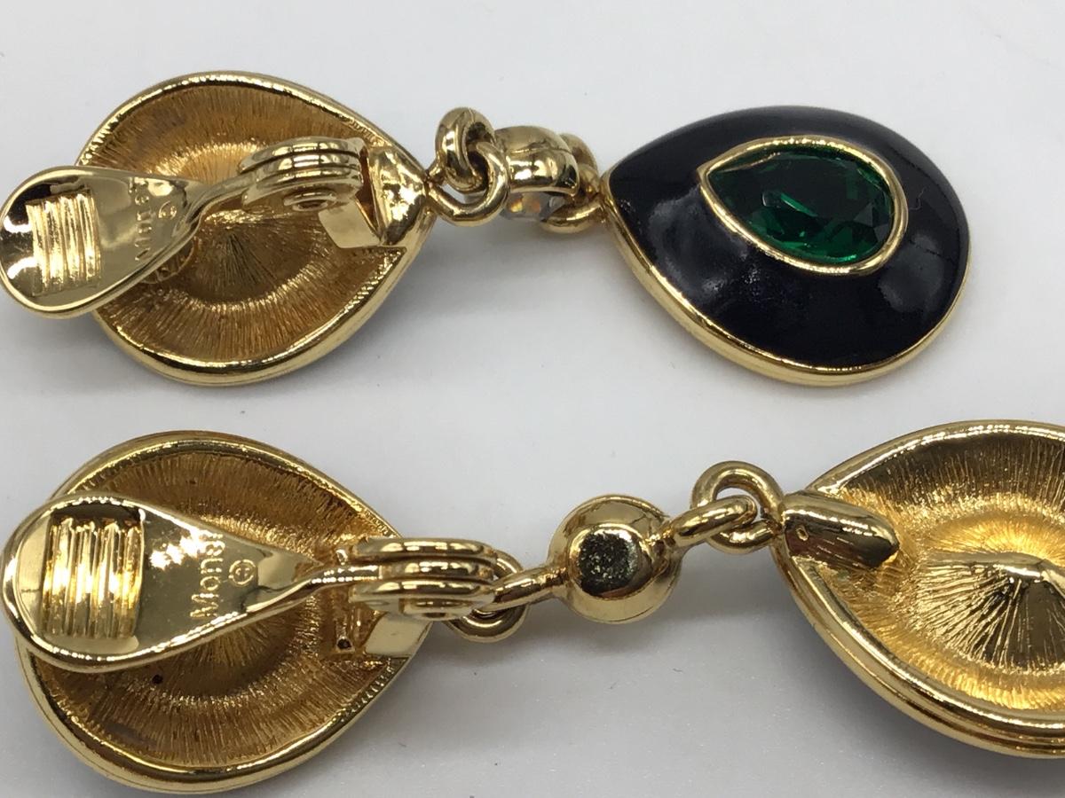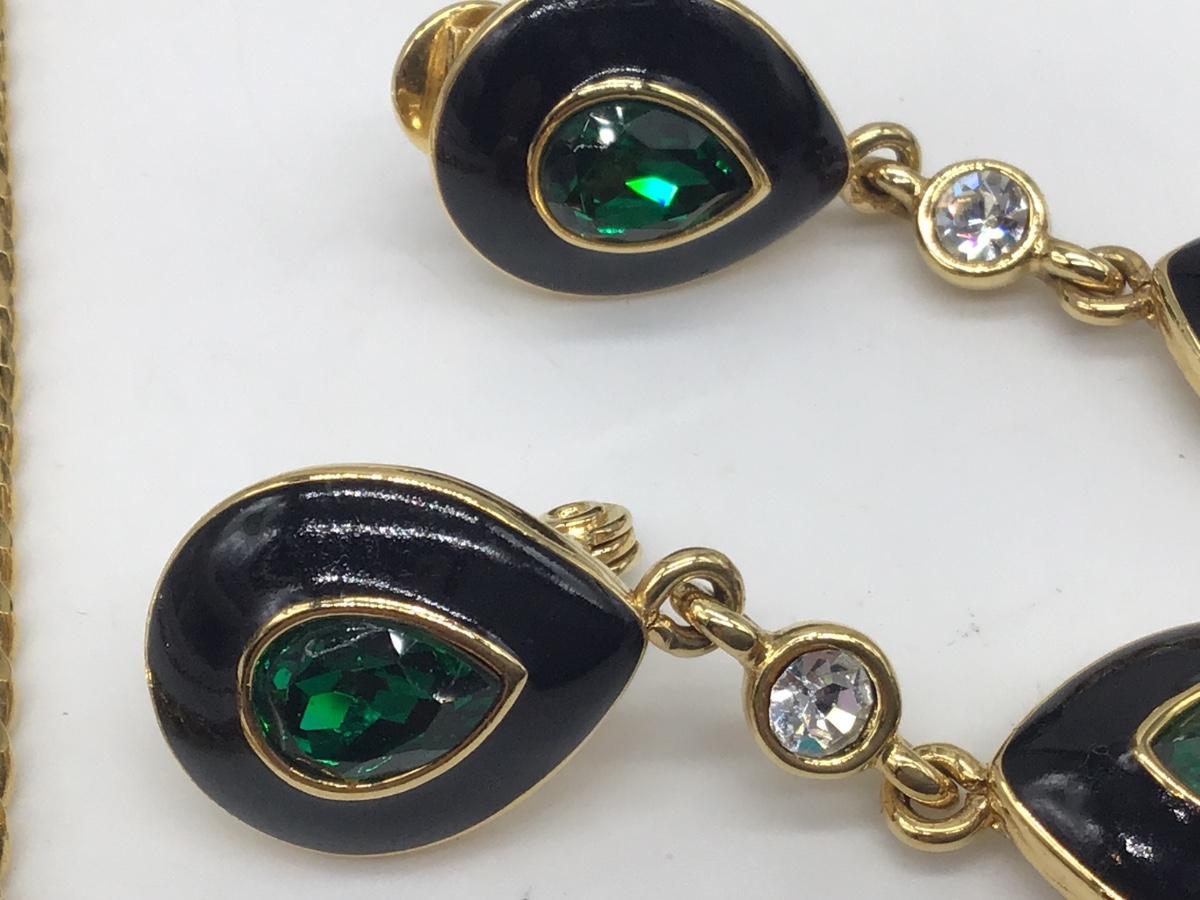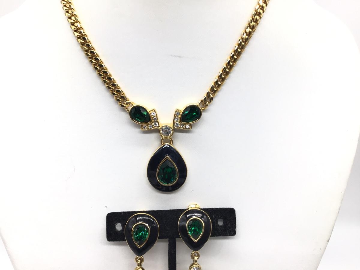 Beautiful Monet Enamel and Green Glass Pendant necklace and Earring Set