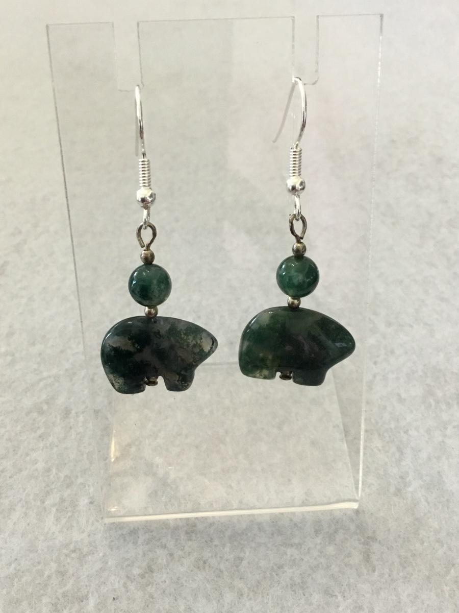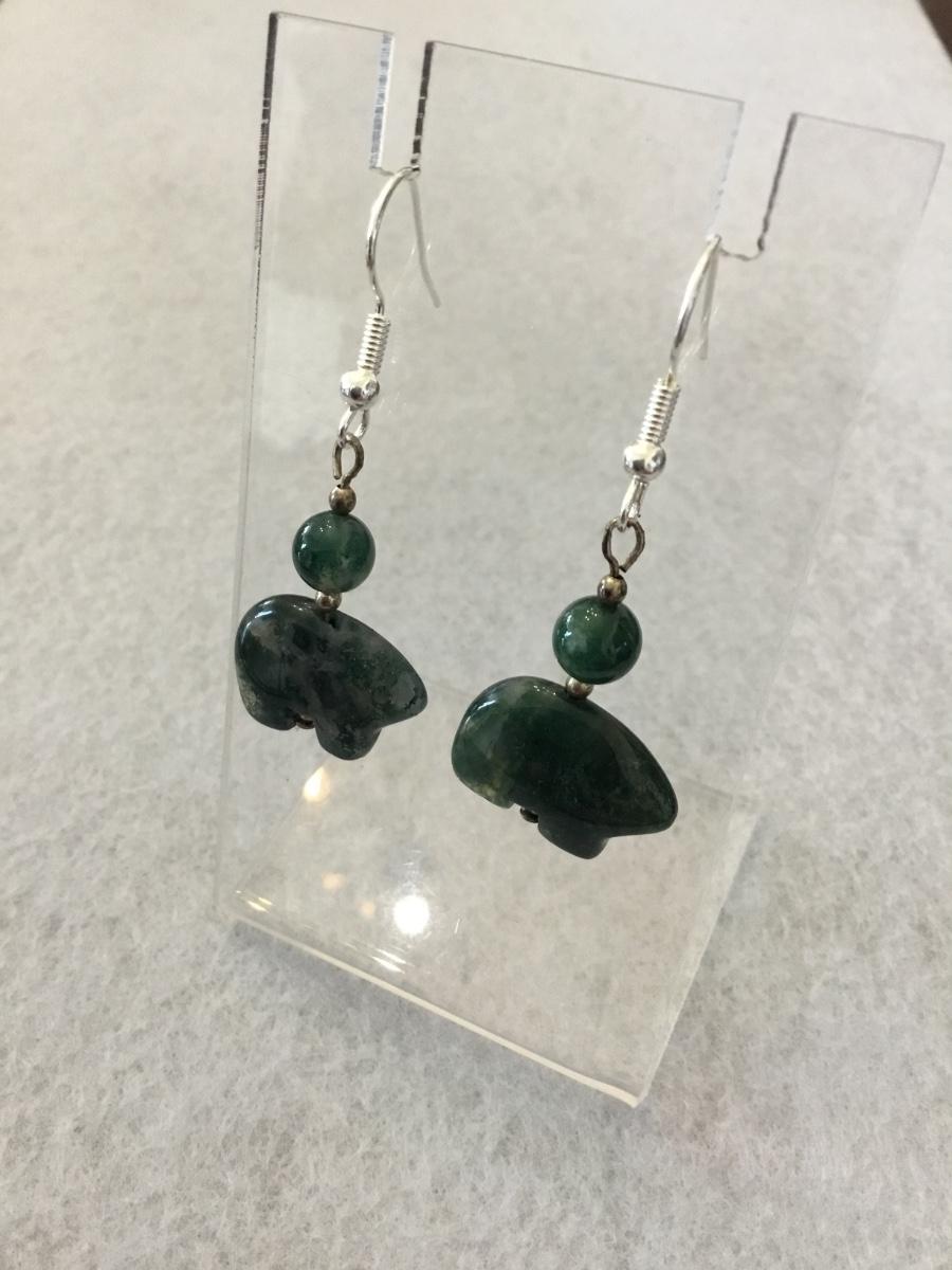 Beautiful Moss Agate bear stone earrings