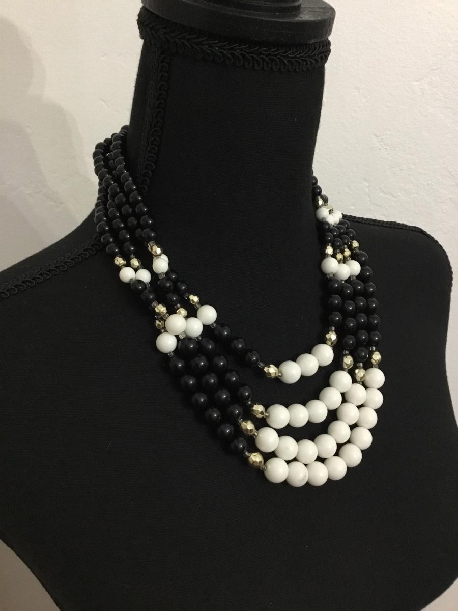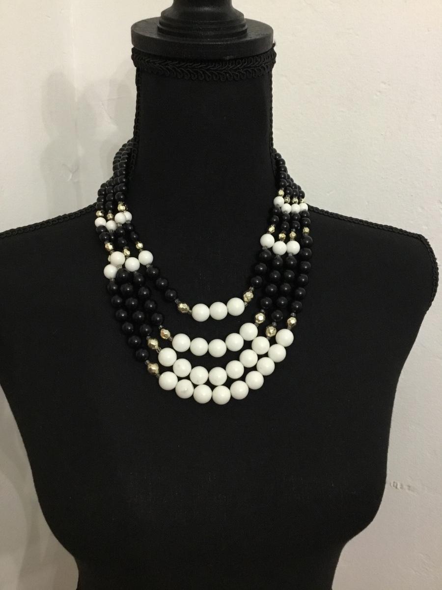 Beautiful, multi layered vintage, black and white bead statement necklace
