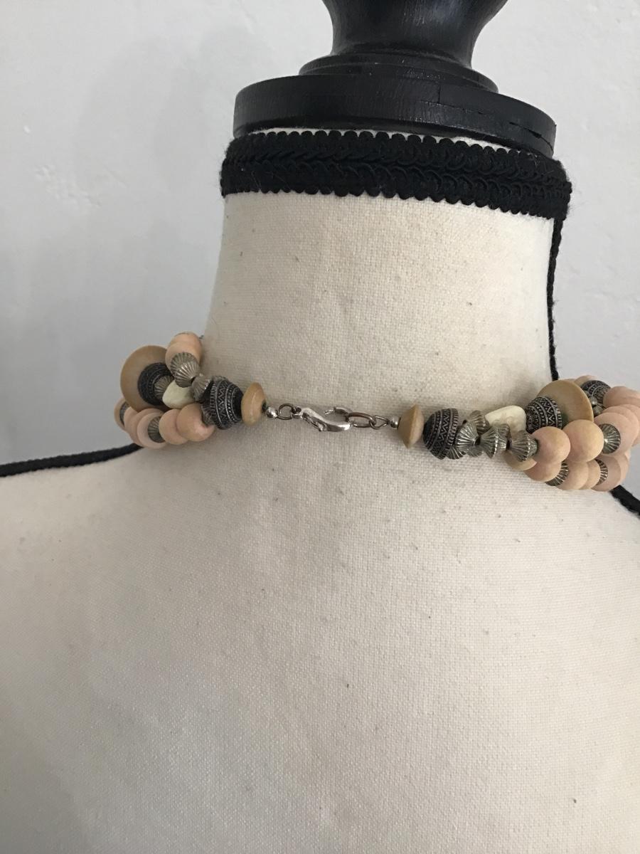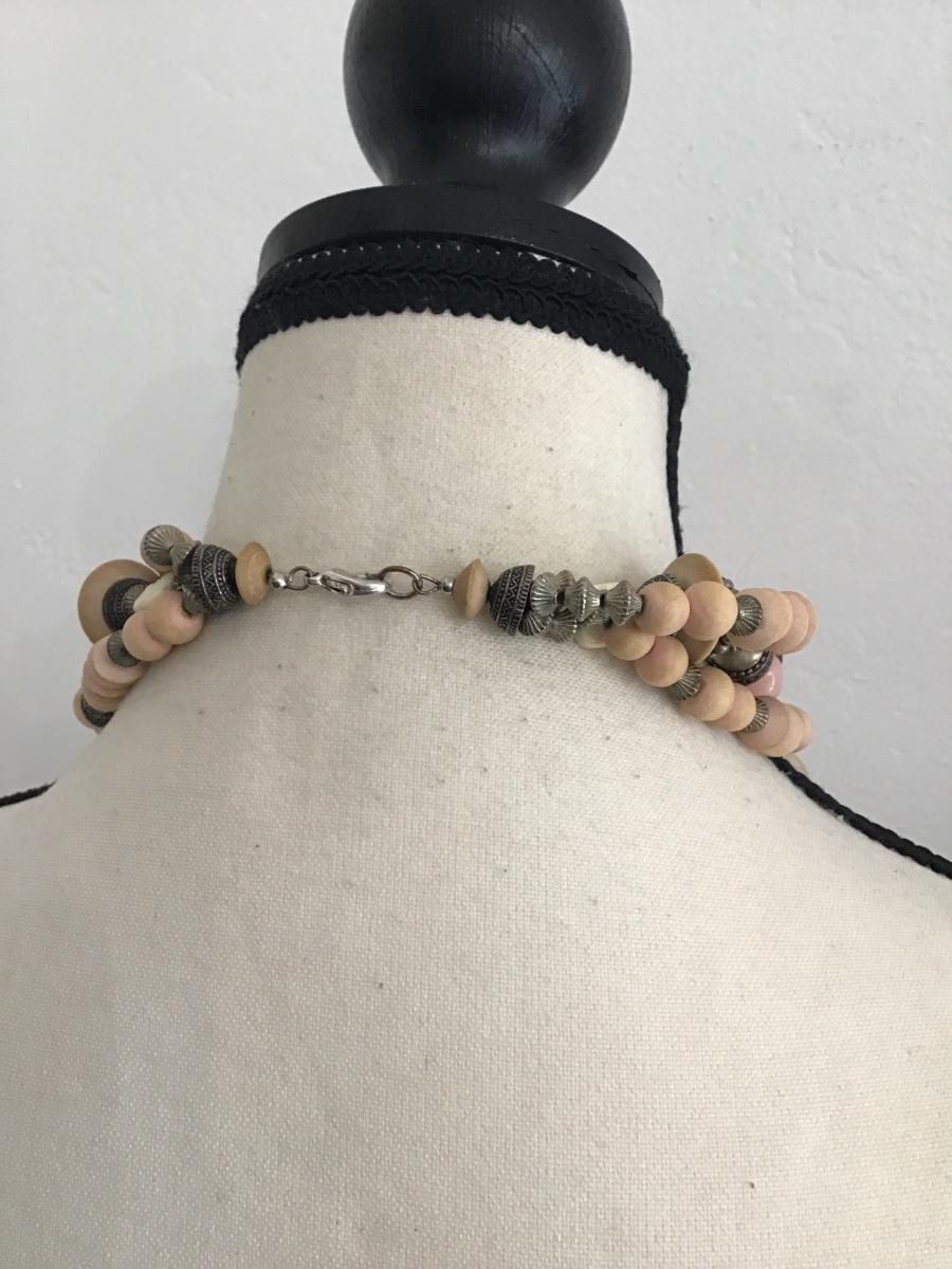 Beautiful, multi strand beaded necklace with pink and cream, silver toned beads. Please see attached photos.