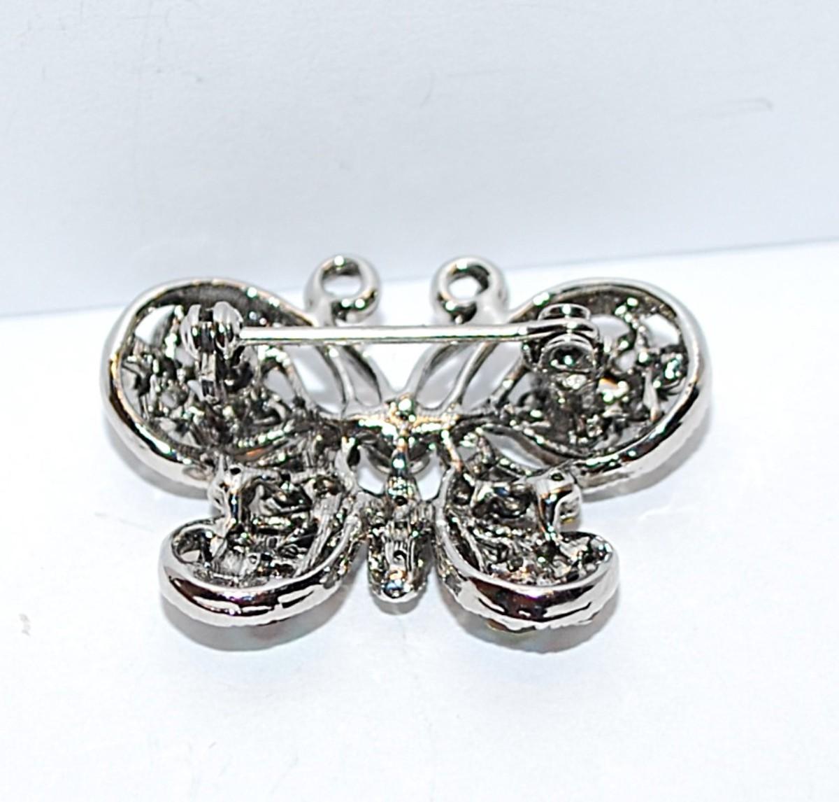Beautiful Multicolor IRIDESCENT Stones BUTTERFLY BROOCH (1½" x 1¼") on a Silver Tone Setting