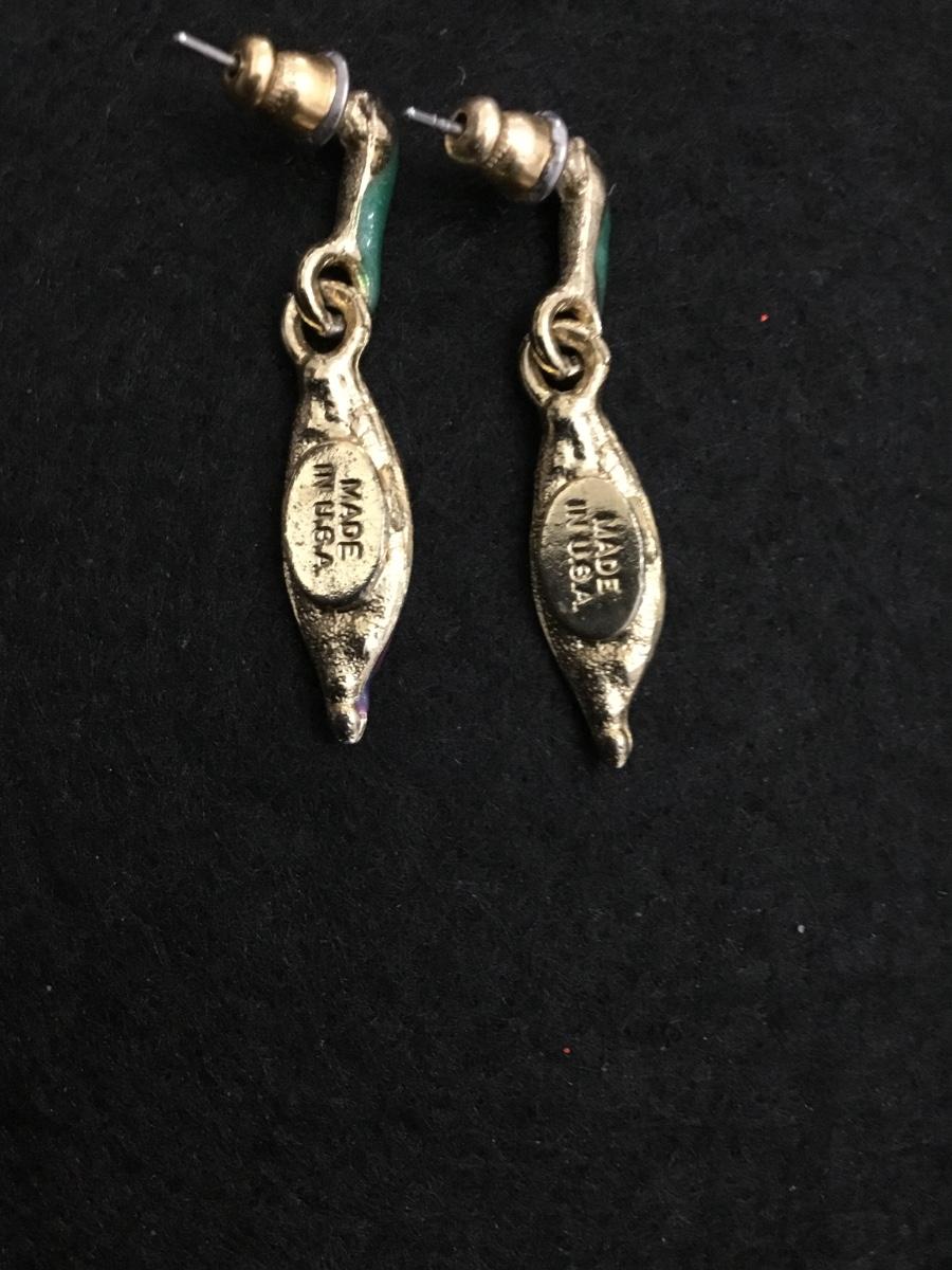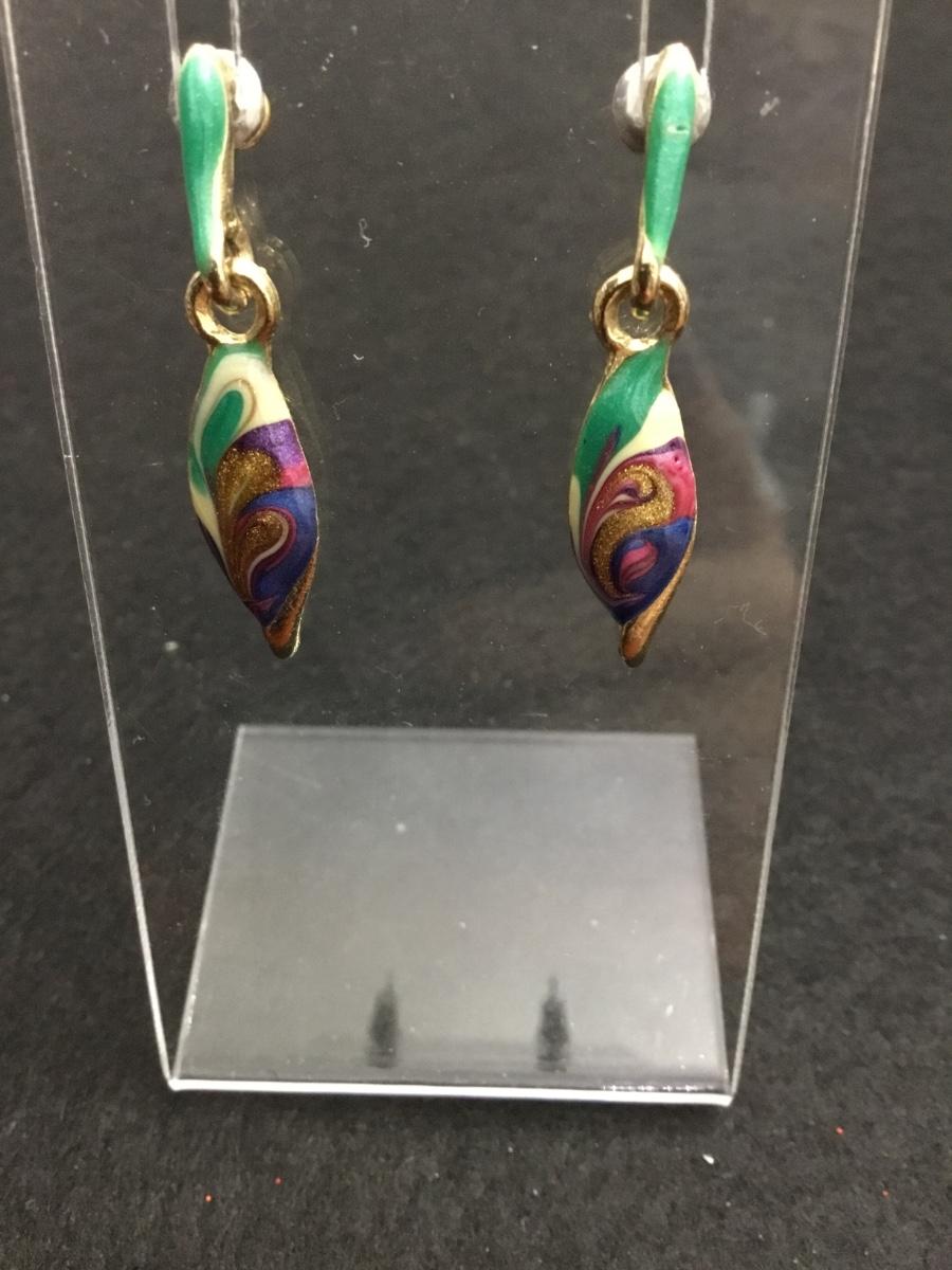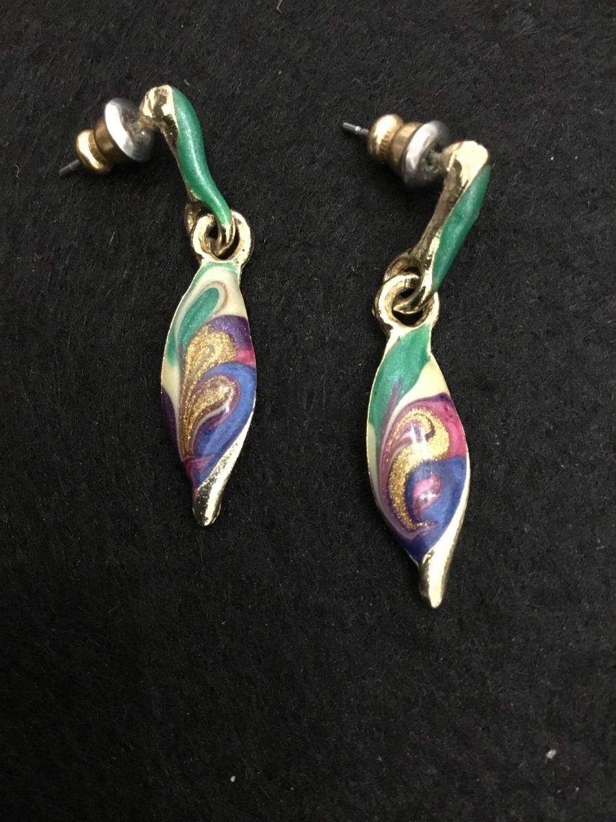 Beautiful, multicolored enamel gold, toned vintage earrings made in the USA