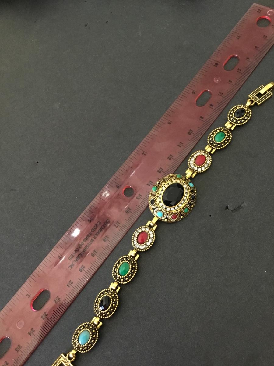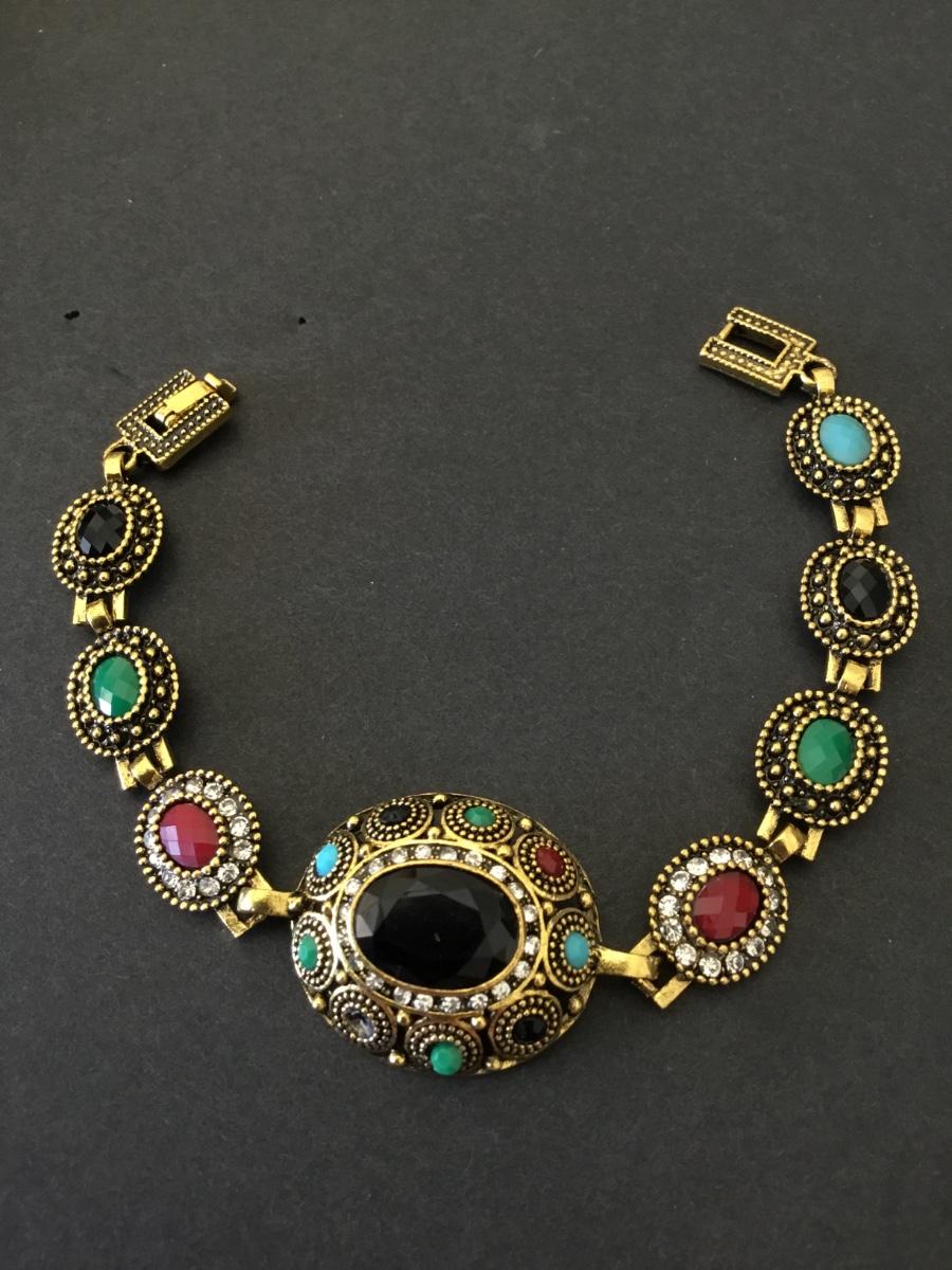 Beautiful, multicolored, rhinestone fashion bracelet, gold toned