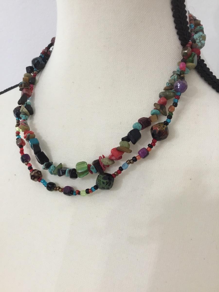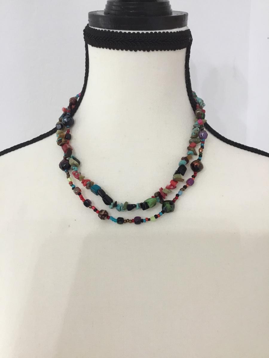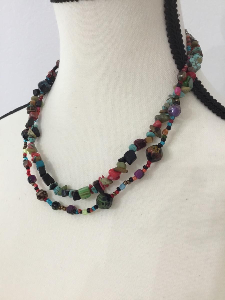 Beautiful multicolored rock and shell layered necklace