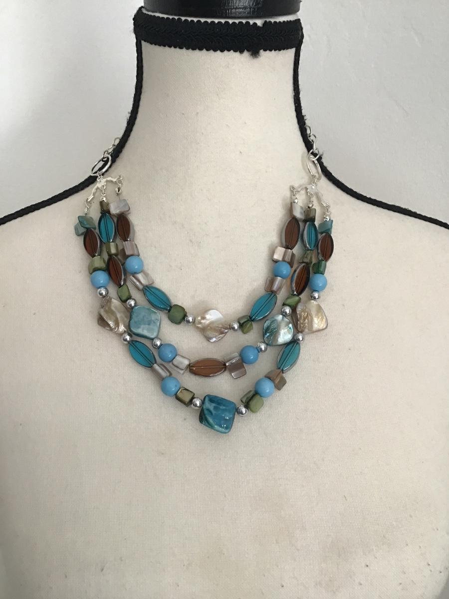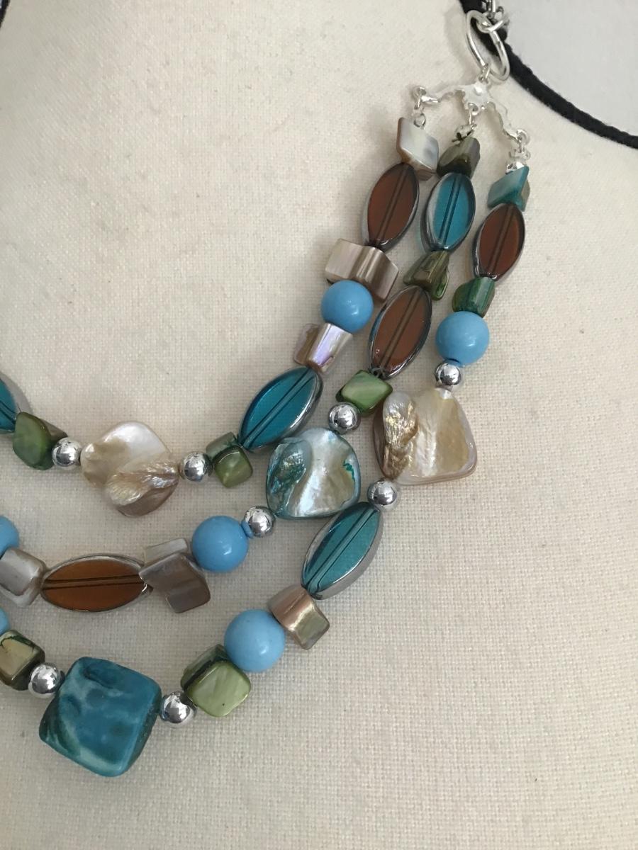 Beautiful multistrand beaded necklace with dyed Abalone Shell and glass Beads . Please see attached photos.