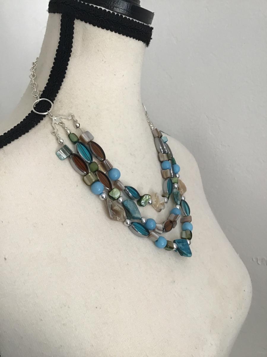Beautiful, multistrand beaded necklace with dyed Abalone shell and glass beads