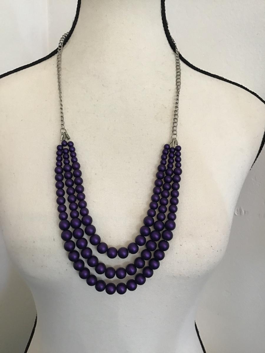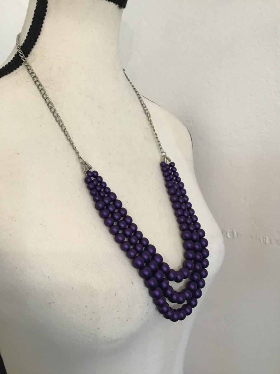 Beautiful multistrand, dark purple glass bead necklace