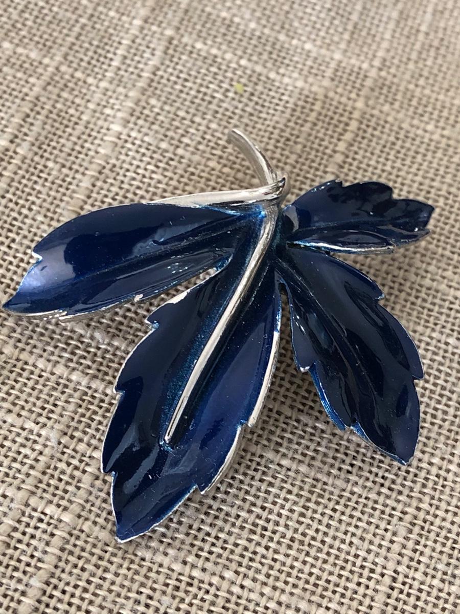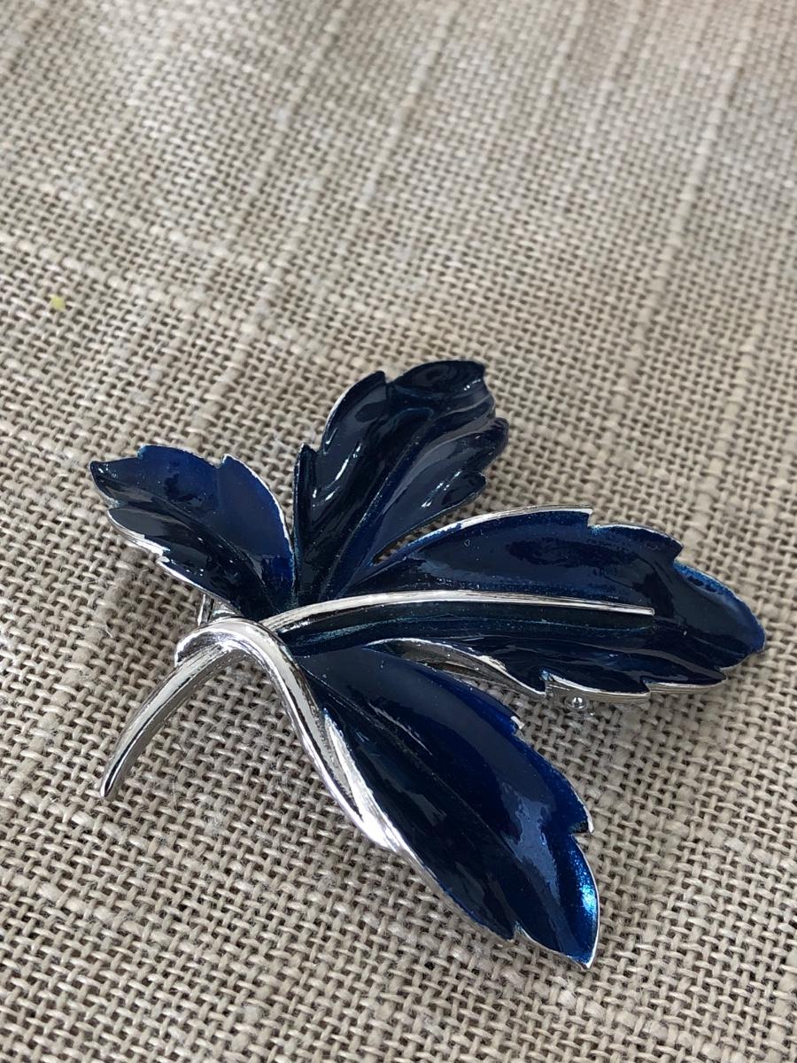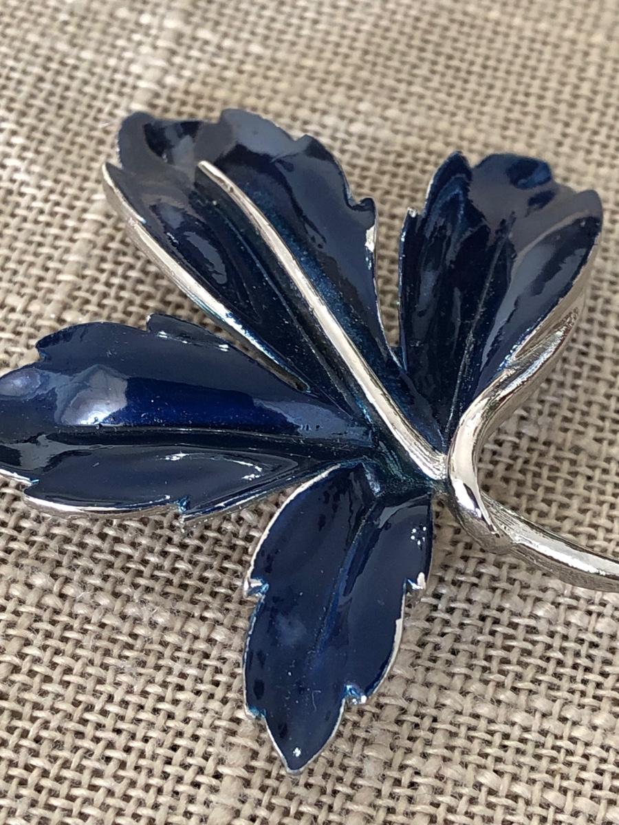 Beautiful Navy Blue Enamel on Silver Tone