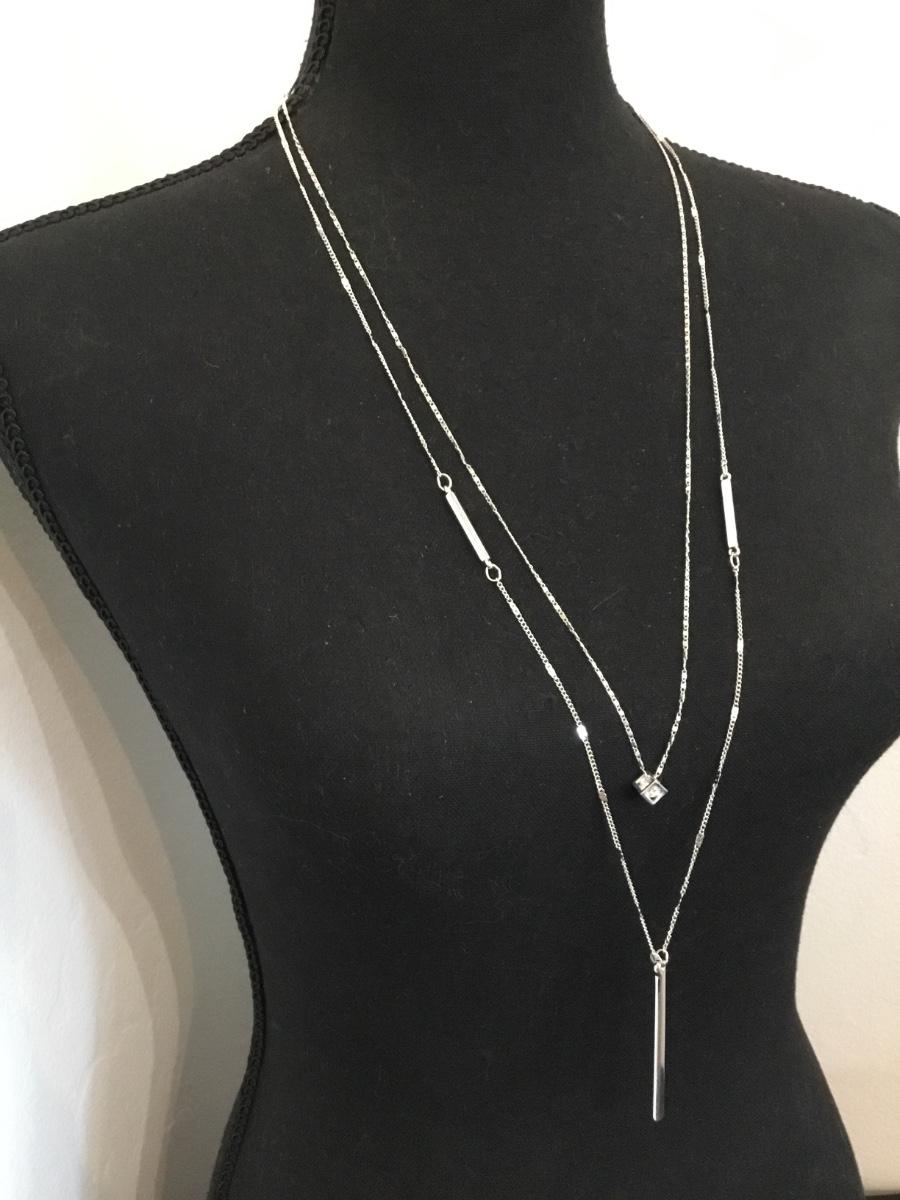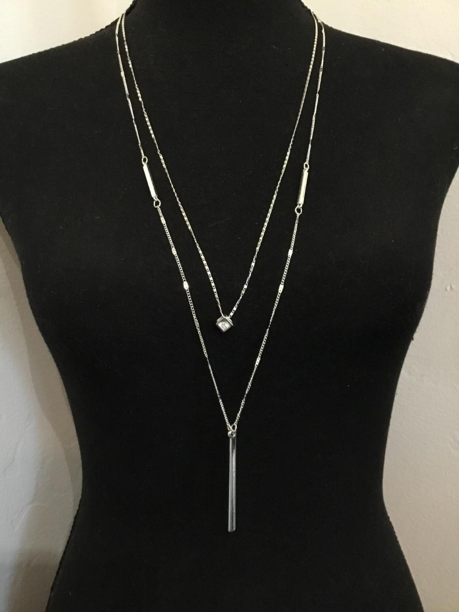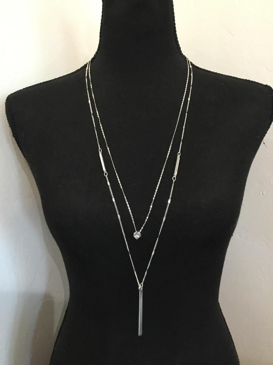 Beautiful new silver tones layered long, crystal necklace