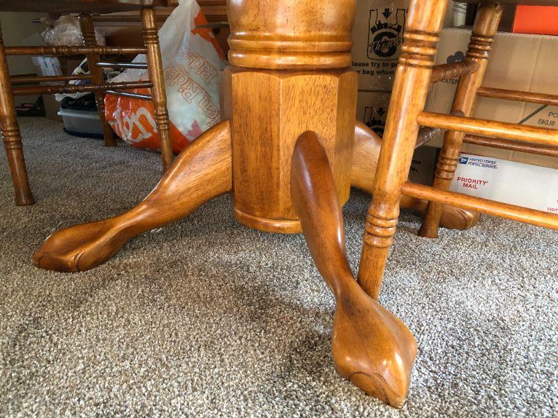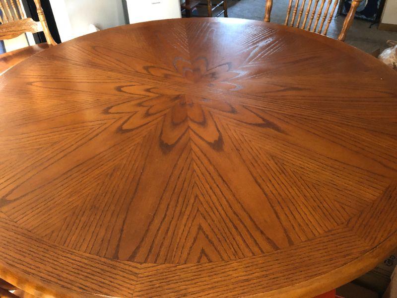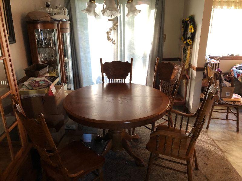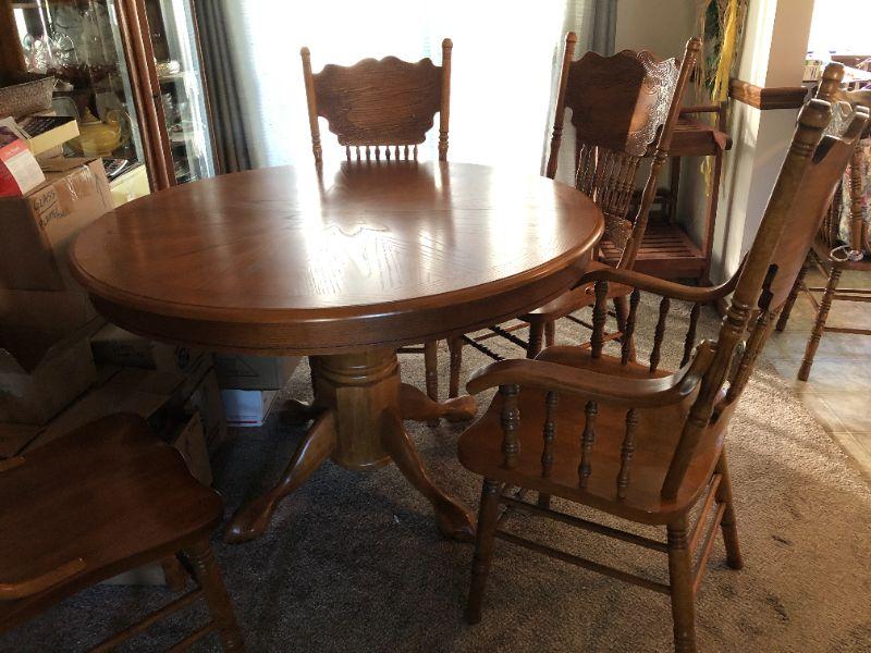 Table is in excellent condition, comes with a leaf for 6. 4 standard chairs and 2 captains chairs