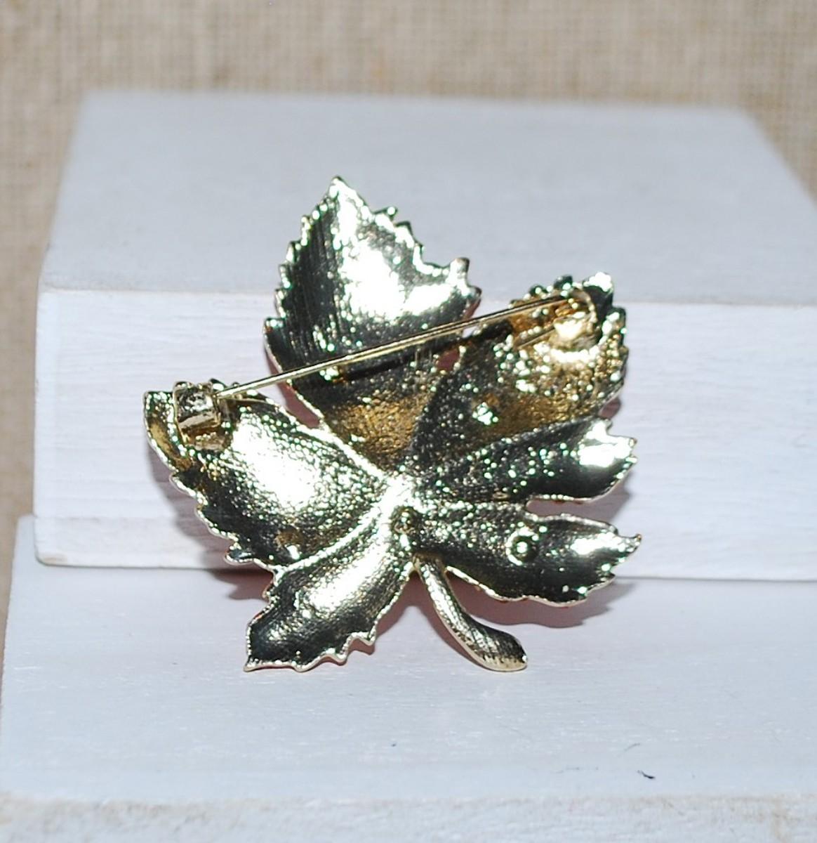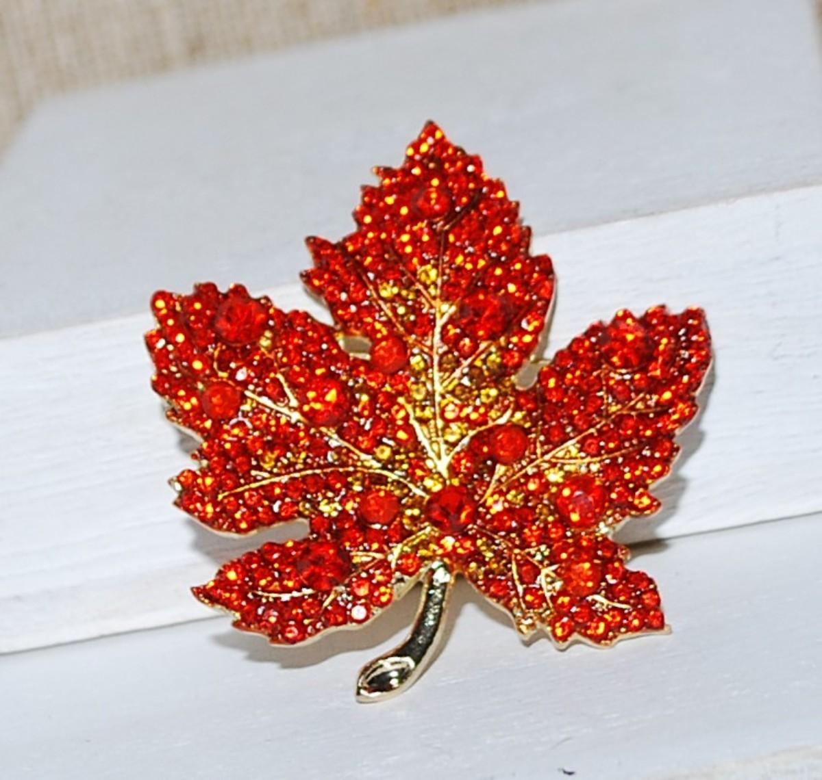 Beautiful Oak Style Leaf BROOCH (2" x 1¾") Covered with ORANGE Stones on a Gold Tone Setting
