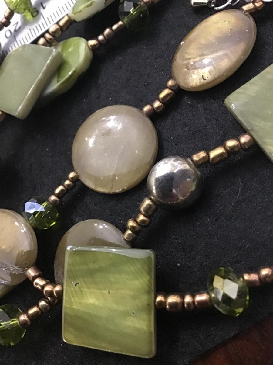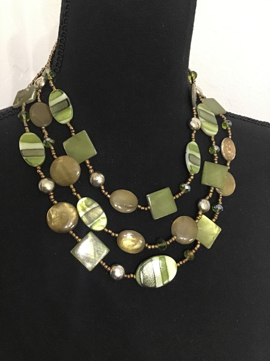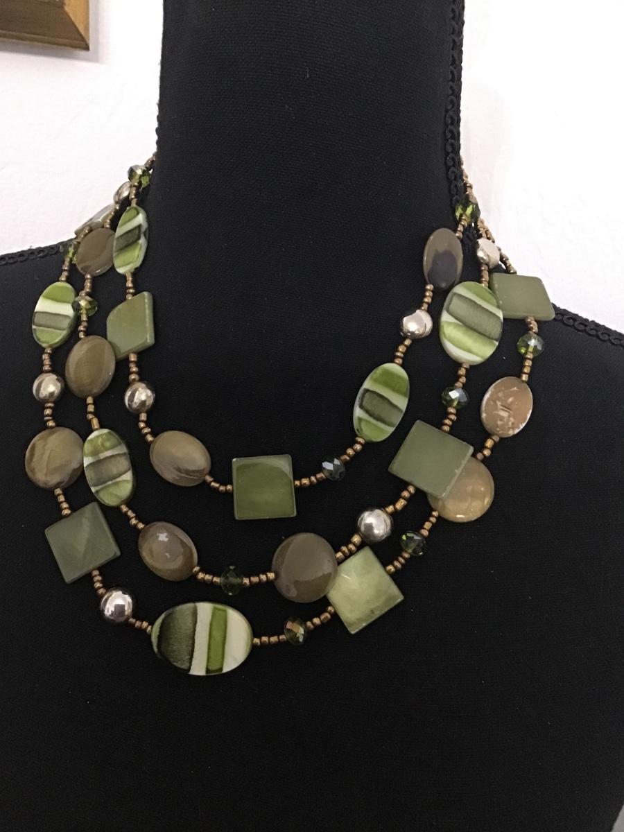 Beautiful olive green, three strand glass beaded necklace
