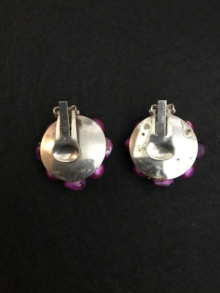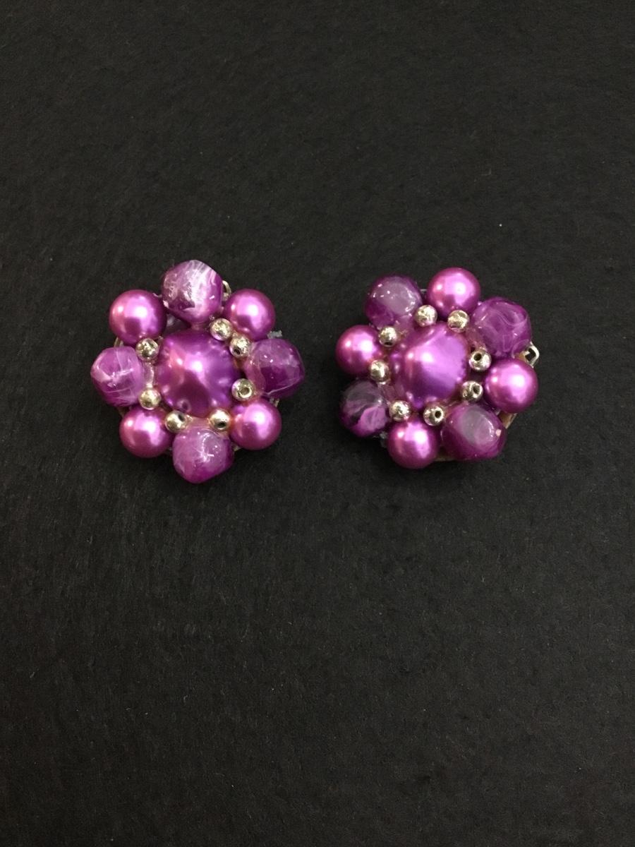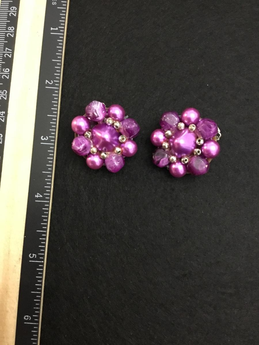 Beautiful orchid, purple beaded, vintage Silver tone clip on earrings