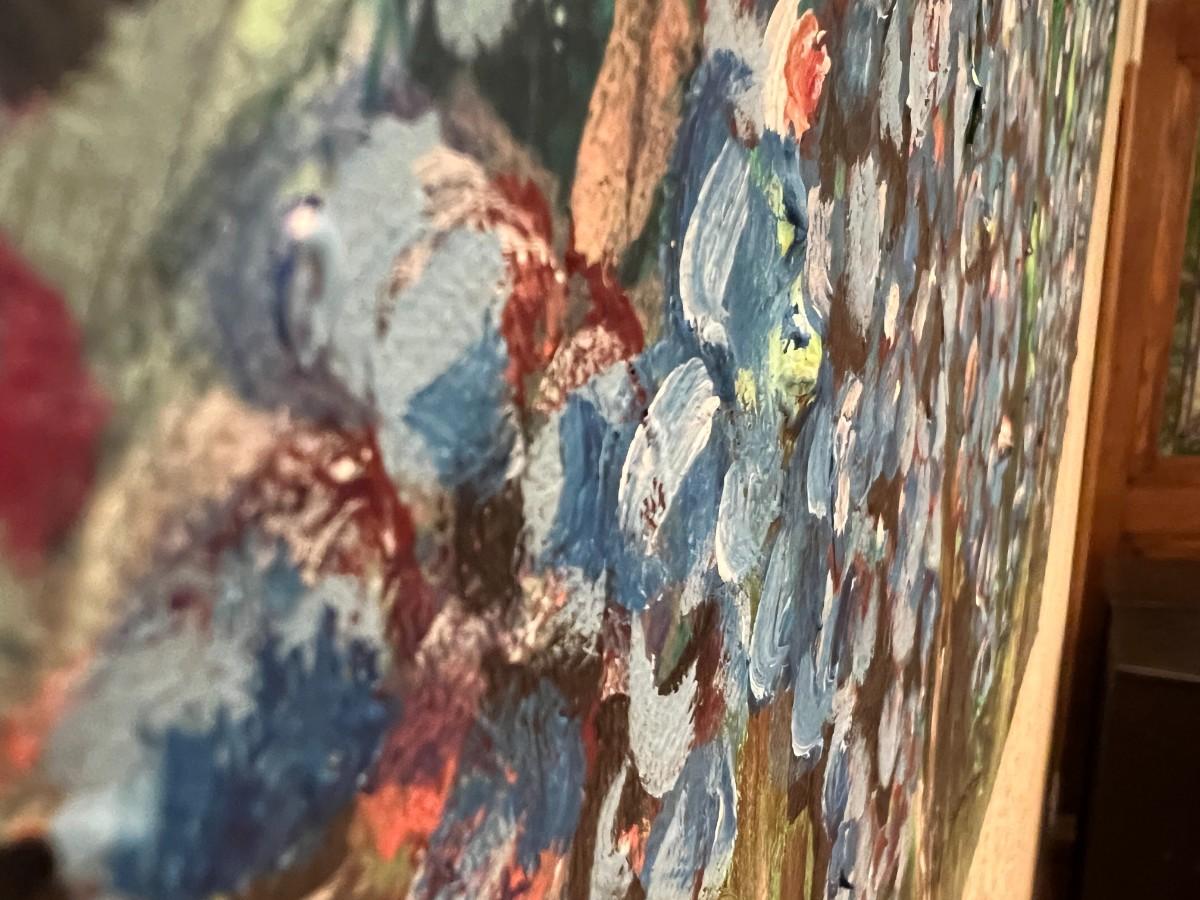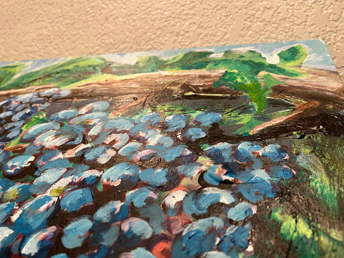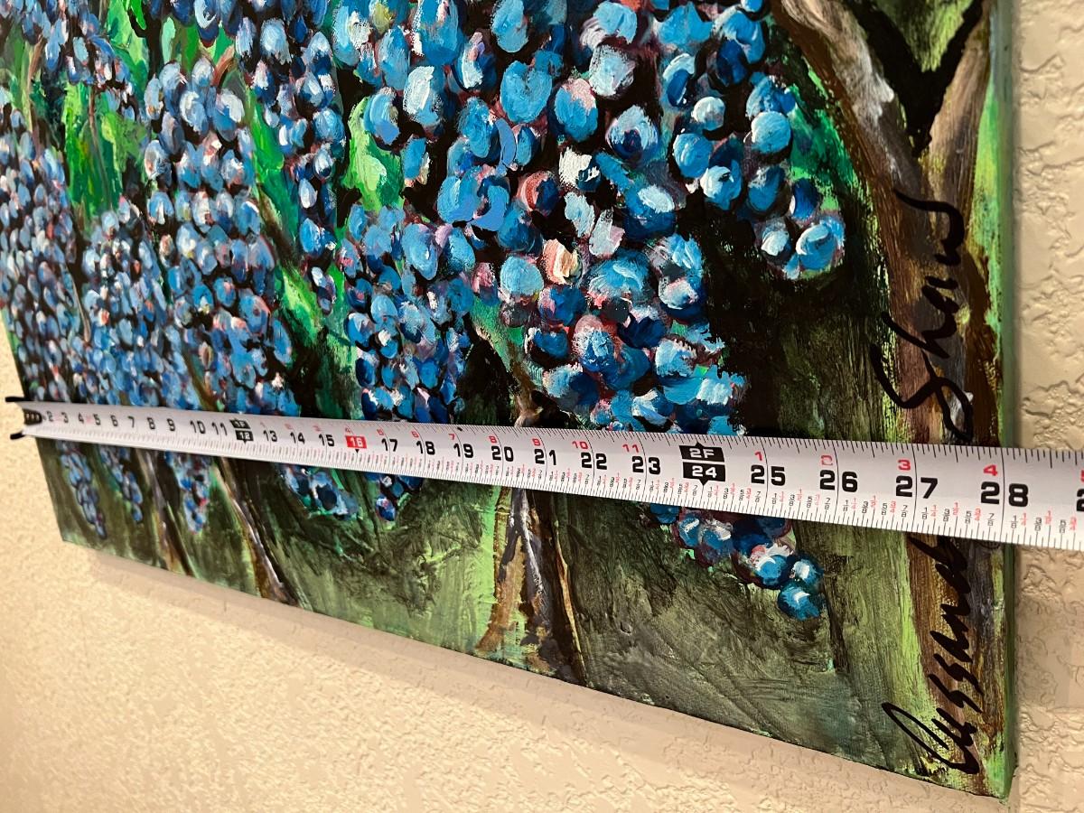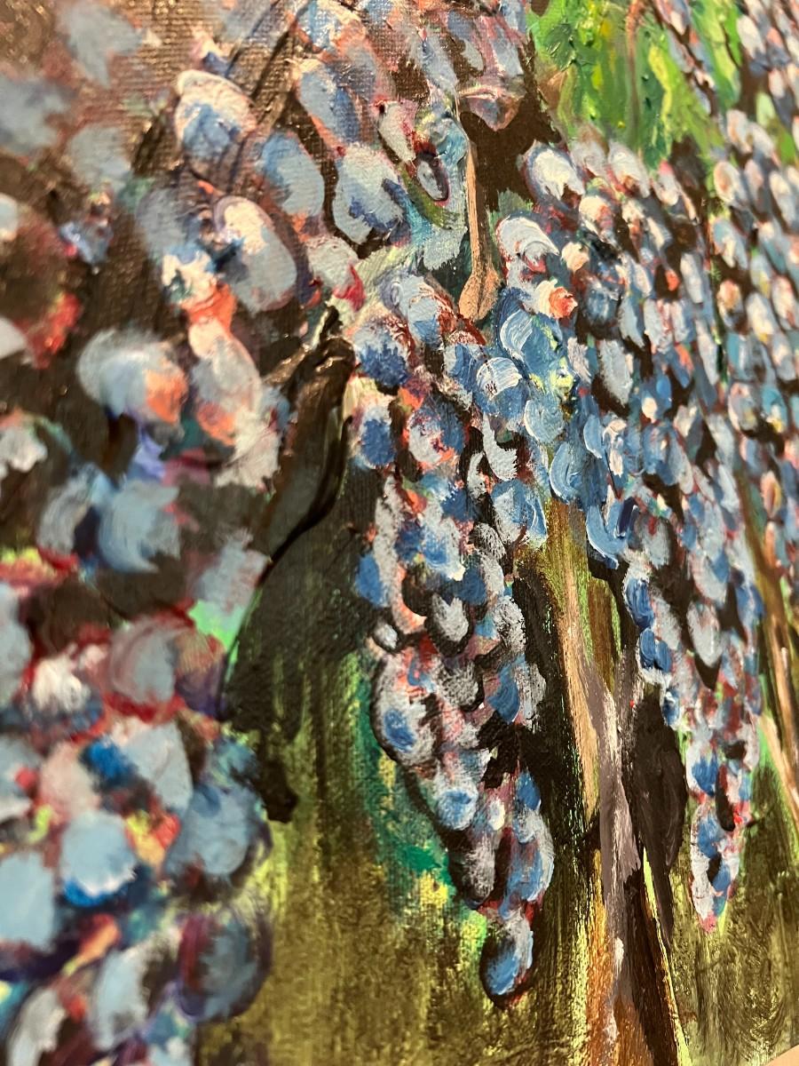 Beautiful Original Painting on stretched canvas of Lush Purple Grapes on the Vine Signed Cassandra Shaw. In good condition, as shown.