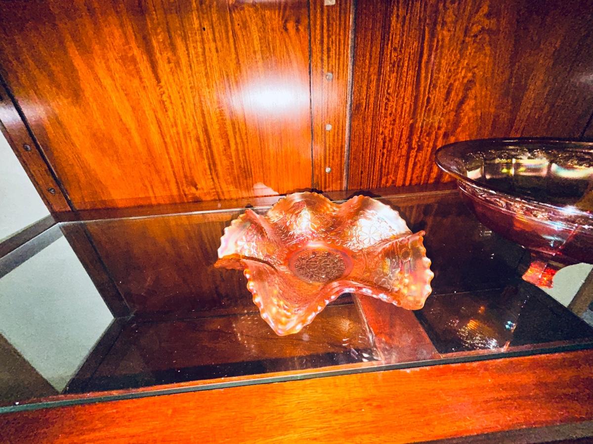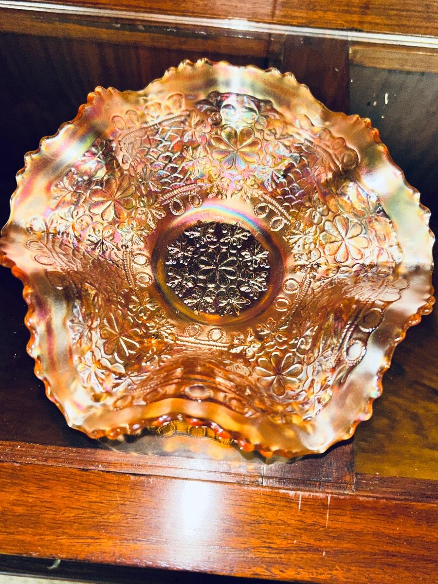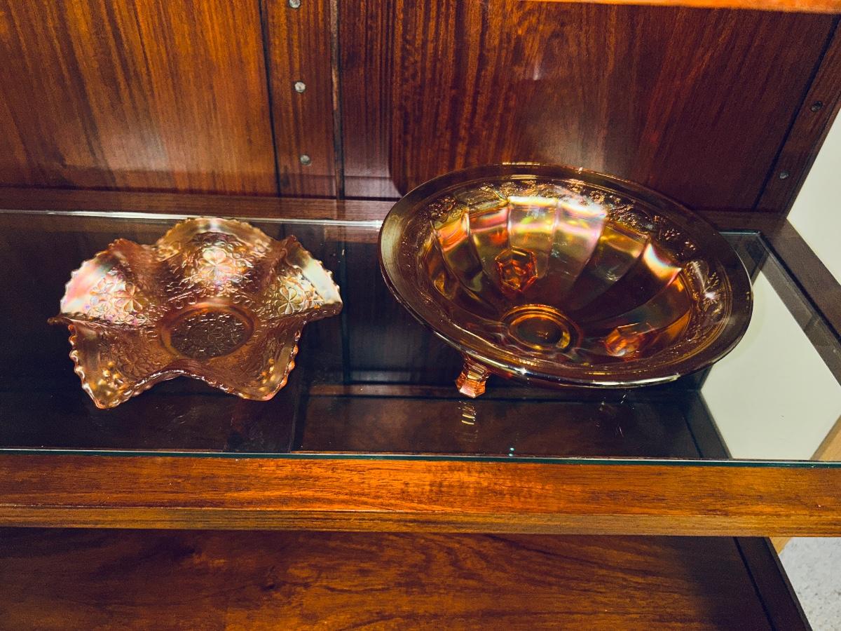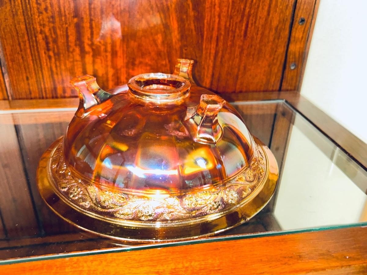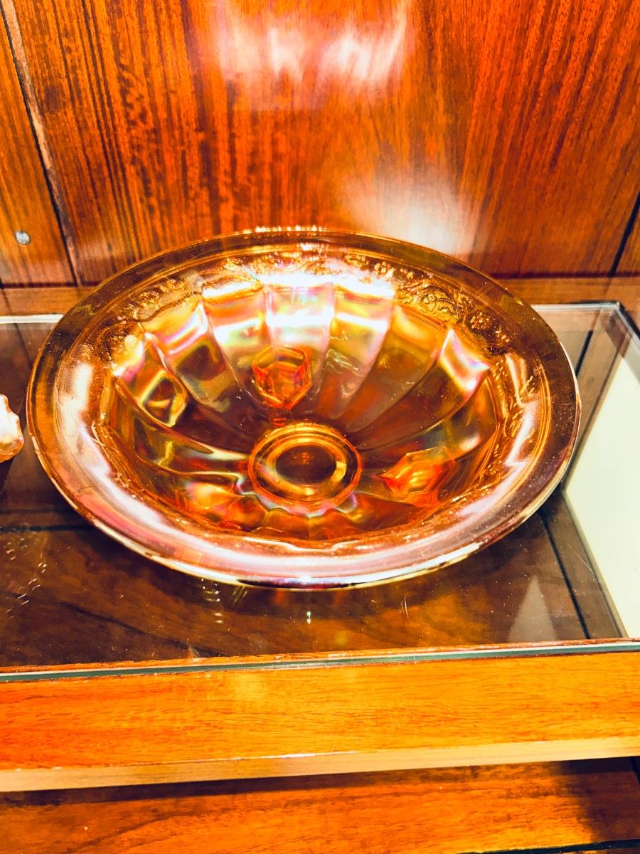 BEAUTIFUL AMBER COLORED CARNIVAL GLASS