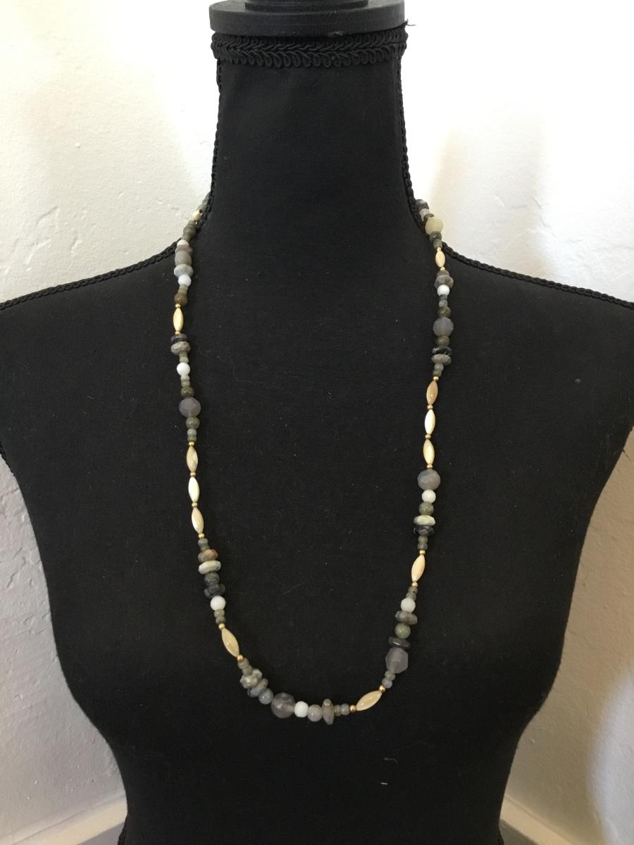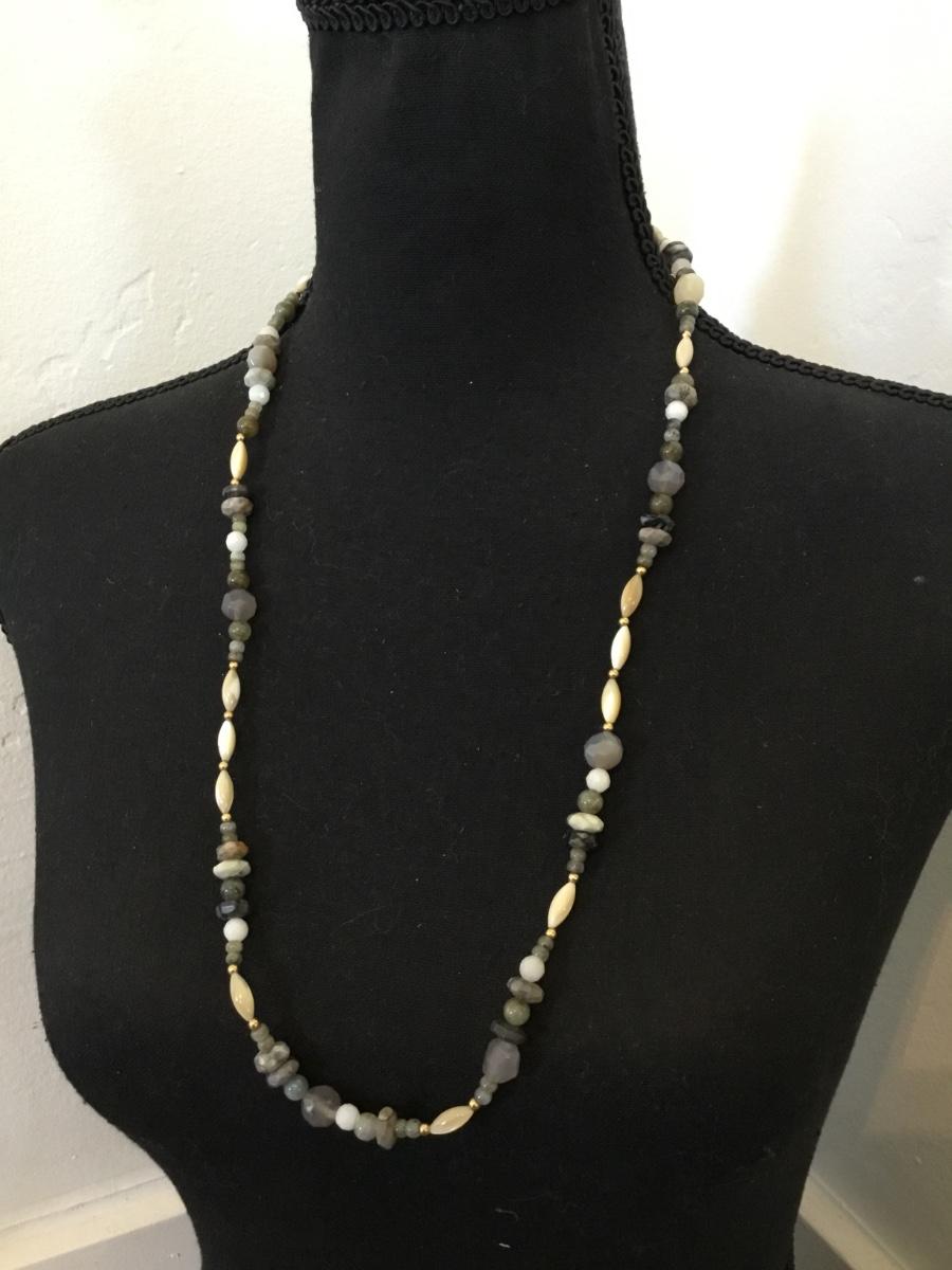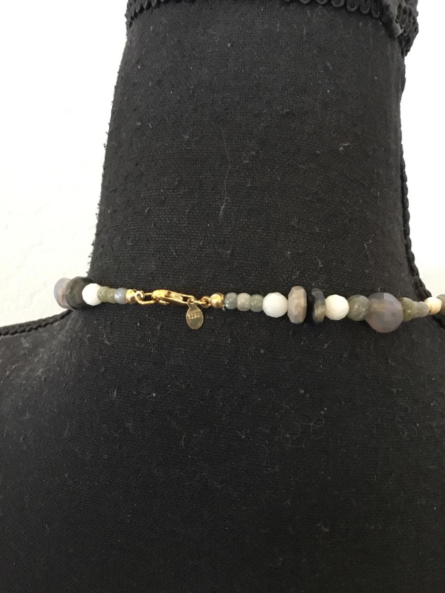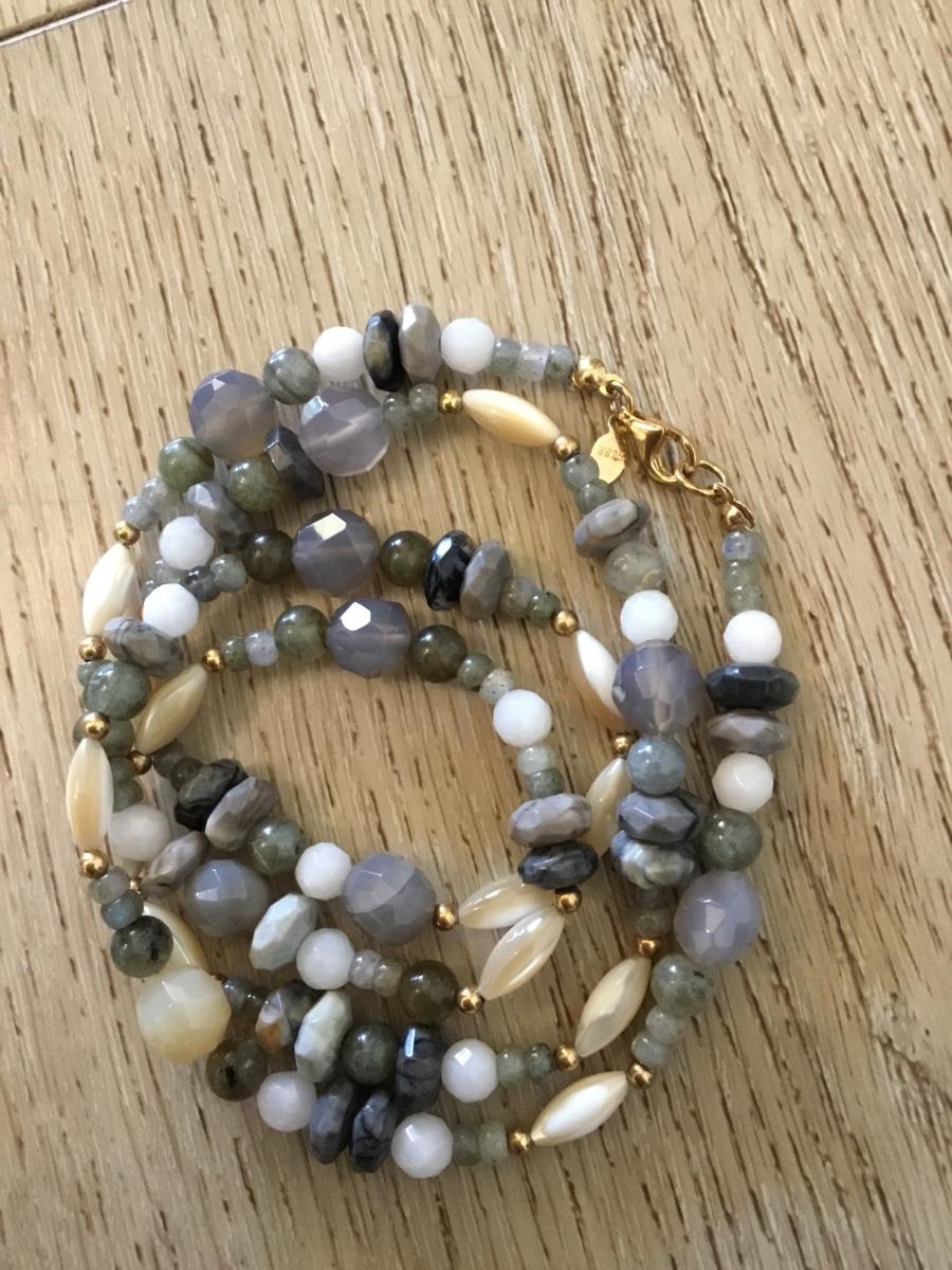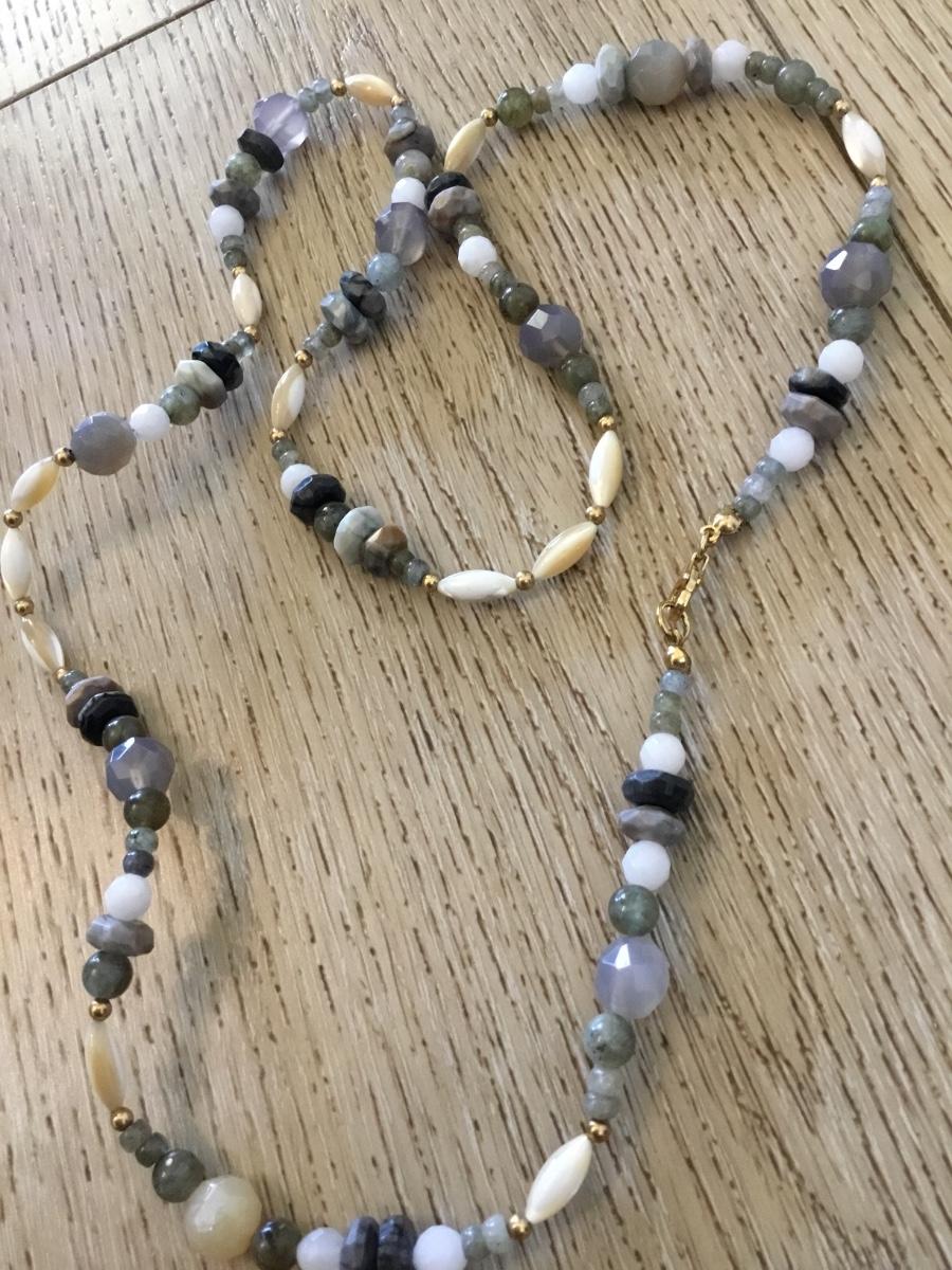 Beautiful pearl stone and crystal glass beer and 925 silver bead necklace