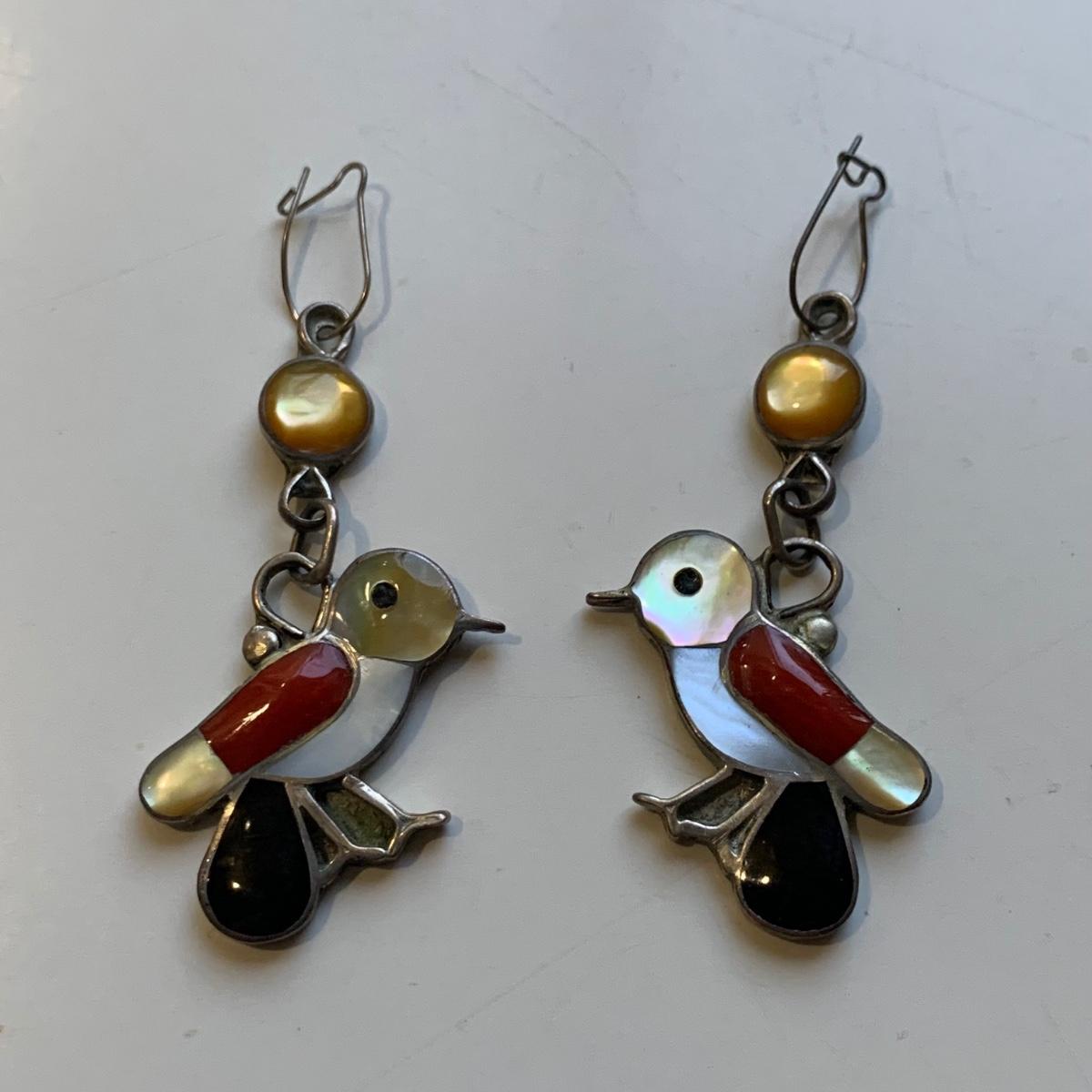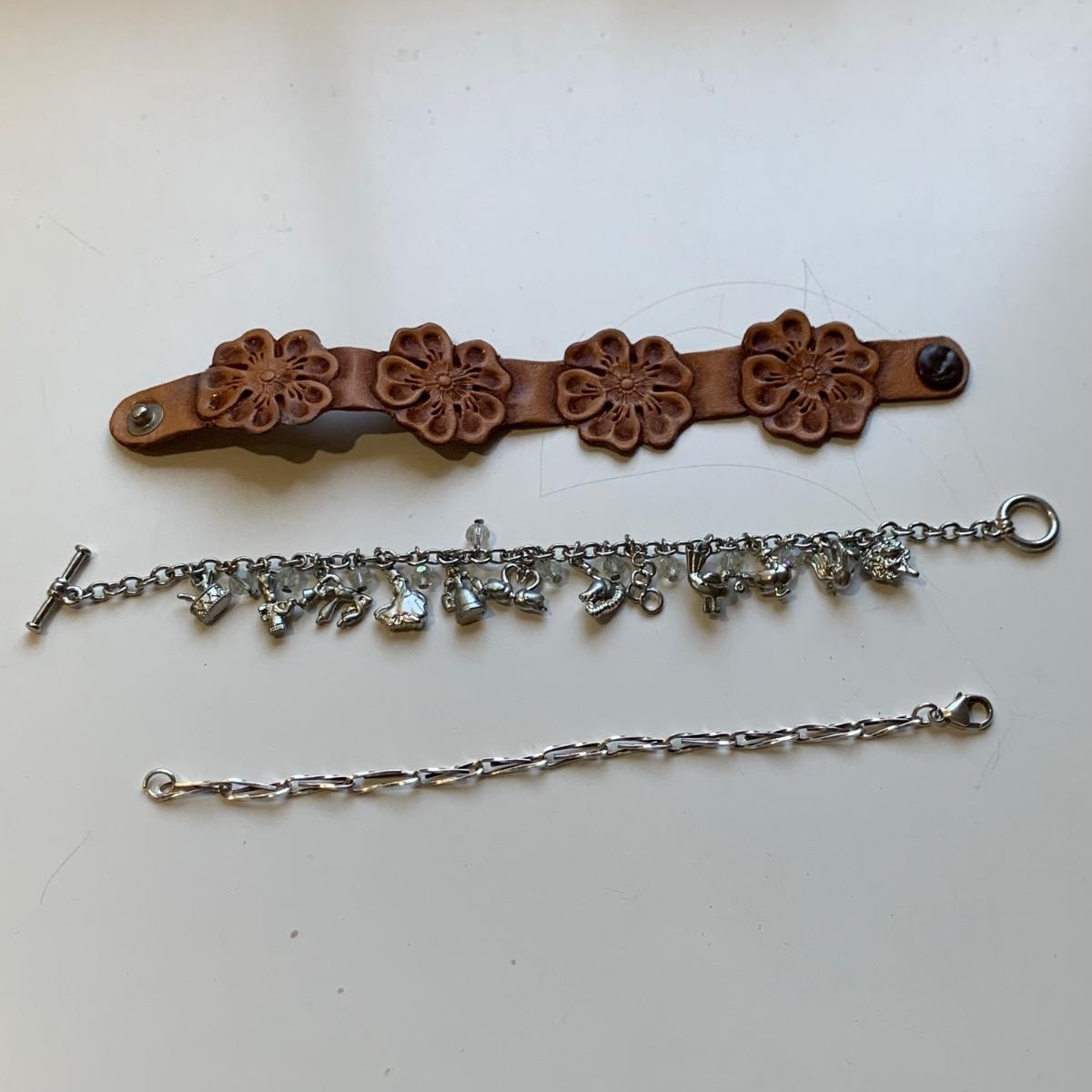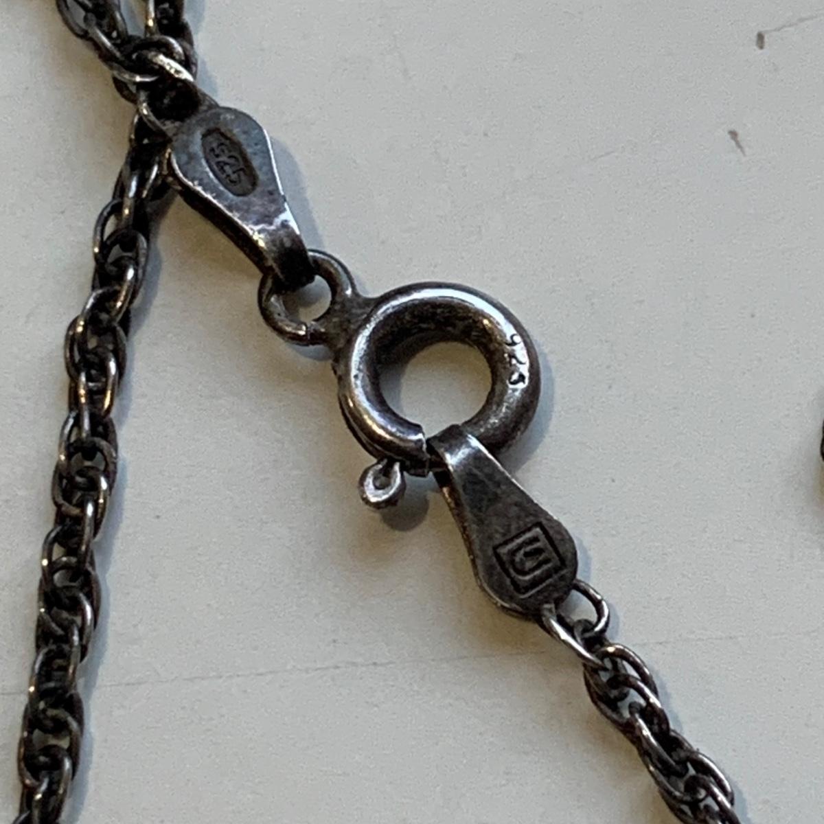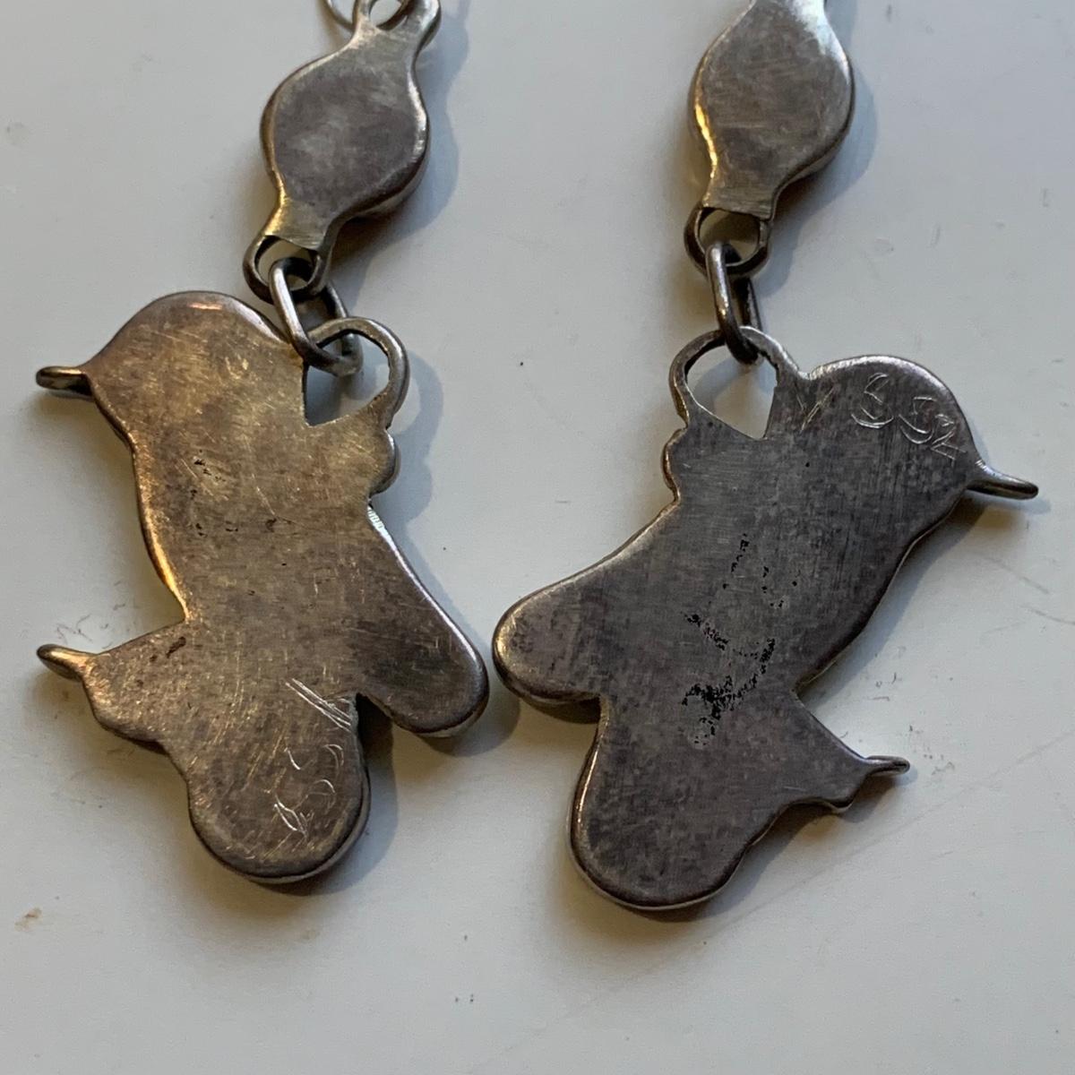 A collection of jewelry including nine necklaces, five loose pendants, 14 bracelets (one with matching clip earrings), three rings, and a pair of bird earrings for pierced ears. The butterfly wing pendant and two stone pendants are marked “˜Sterling’ or “˜925’. The dolphin bracelet is marked “˜KRN Ster’. The longest necklace is the double chain Chico’s necklace at 30” and the shortest is the single chain at 16”. Please see photos for inventory and any markings found.