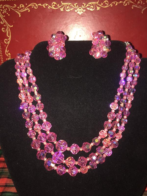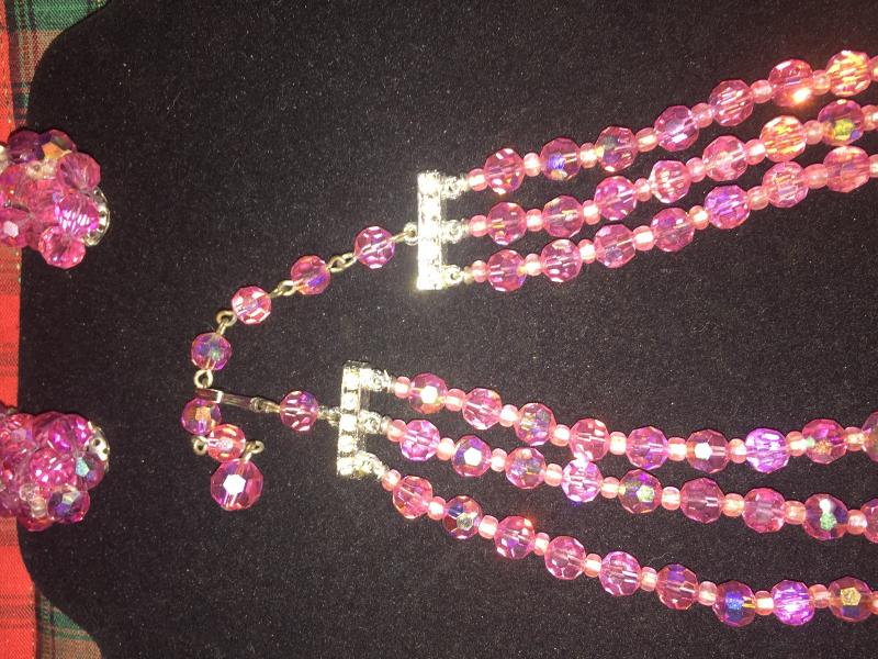 Beautiful pink AB glass 3 strand set