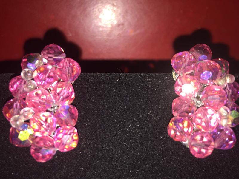 .... This is a stunning vintage set beaming with AB color. Heavy glass crystals in excellent vintage condition.