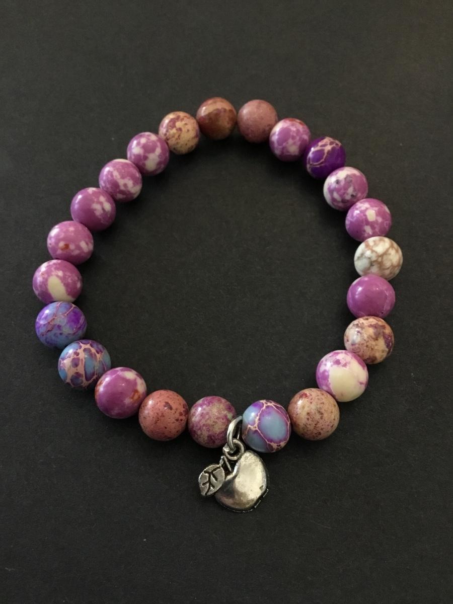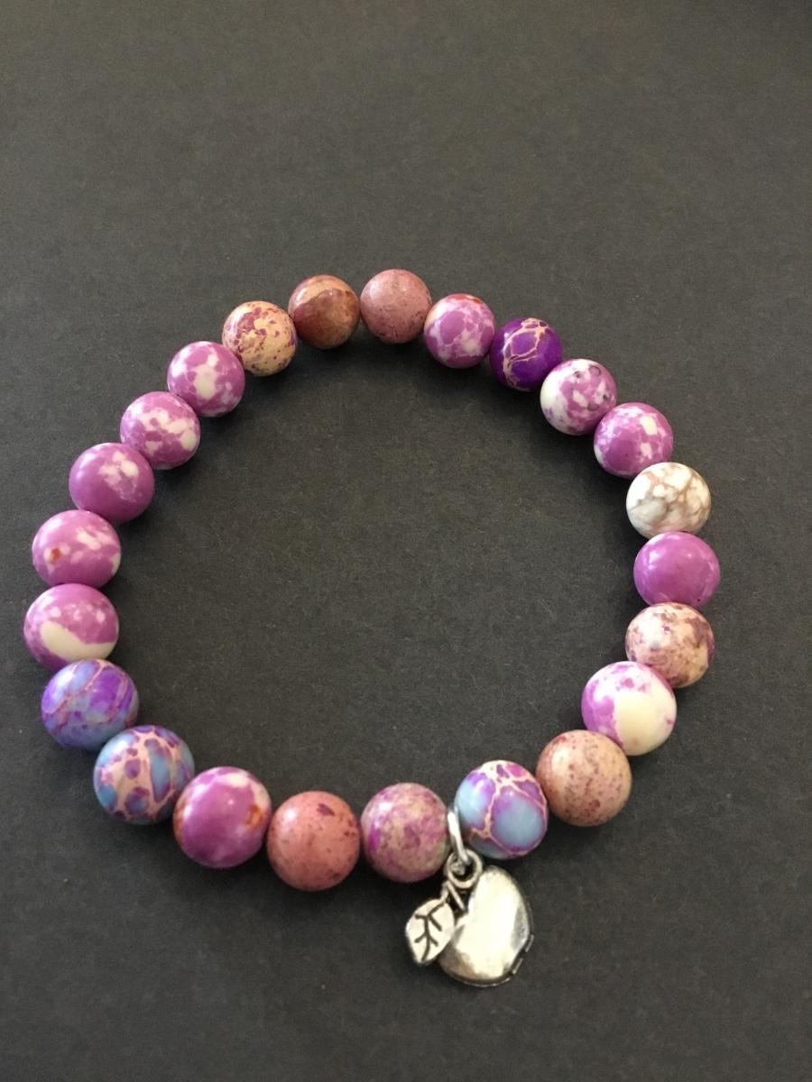 Beautiful, pink and purple stone bead bracelet with Apple charm