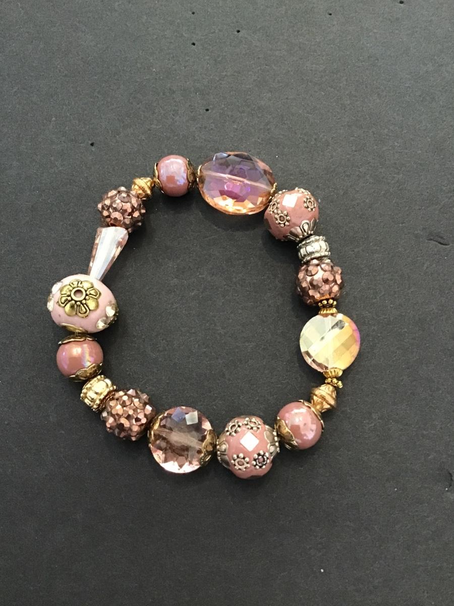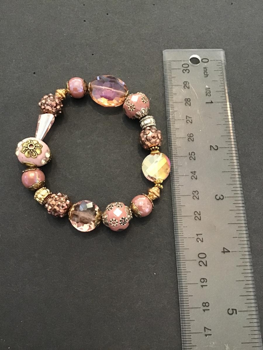 Beautiful pink glass stretchy bracelet. Very nice. Please see attached photos.