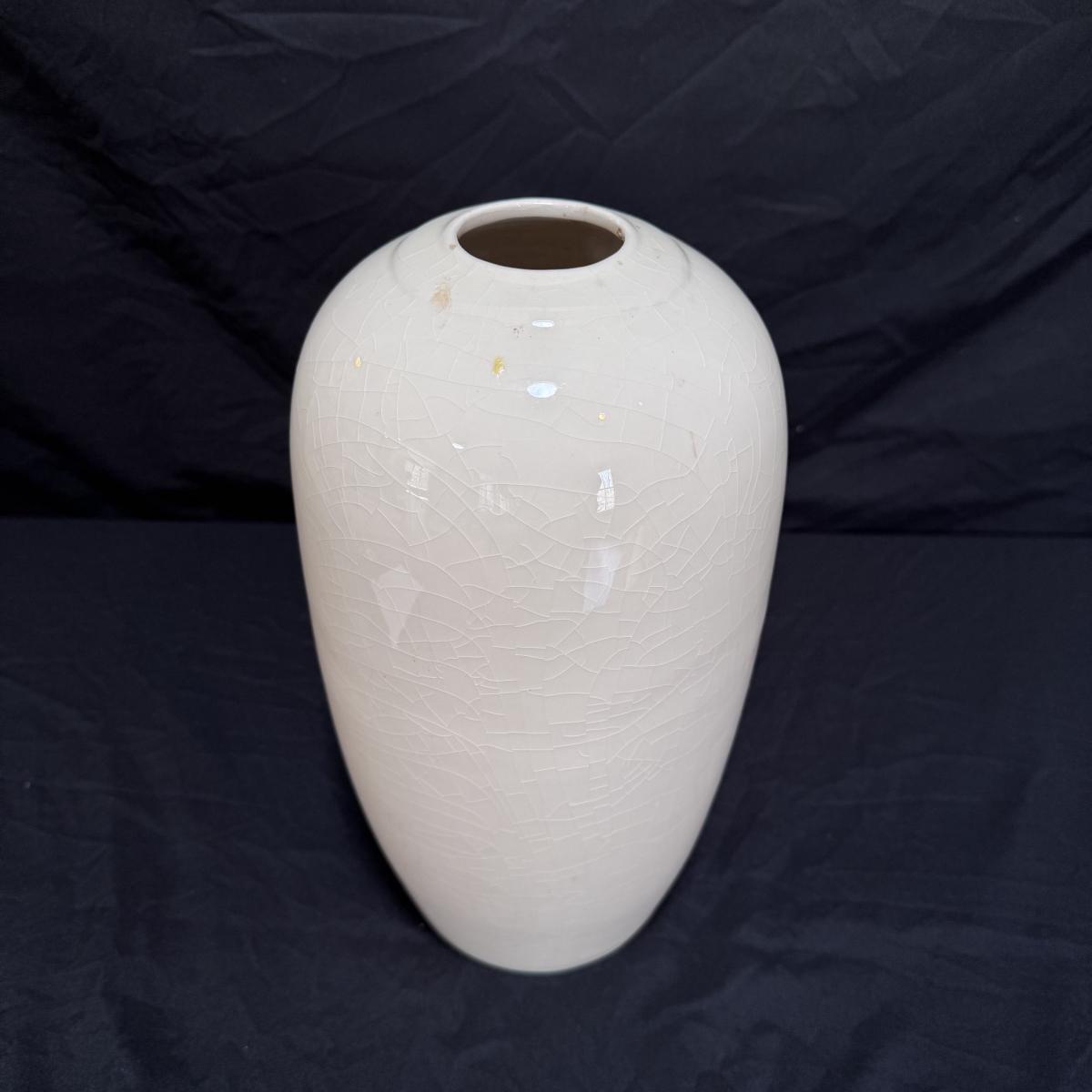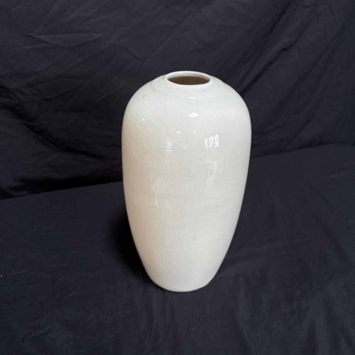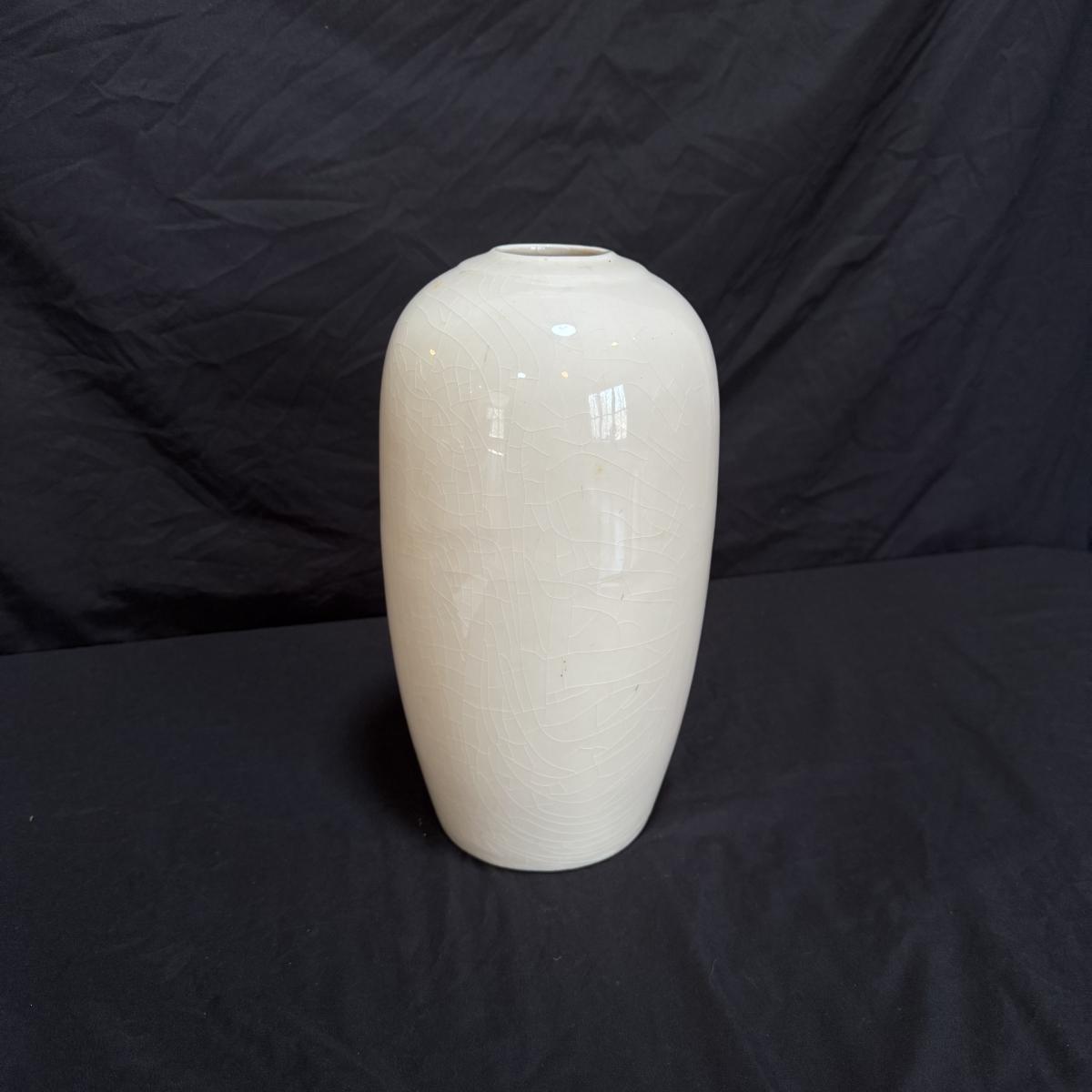 This lot includes one beautiful porcelain vase. The vase is marked with a maker's mark on the bottom, but we are unable to decipher it. The vase measures 5”D x 11”H. There is some crazing and a small chip on the top of the vase - see picture included. Shipping available.