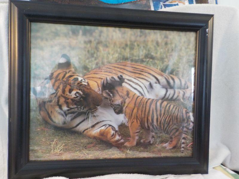 "Beautiful Professional Full size Tiger mom and Baby frame picture."