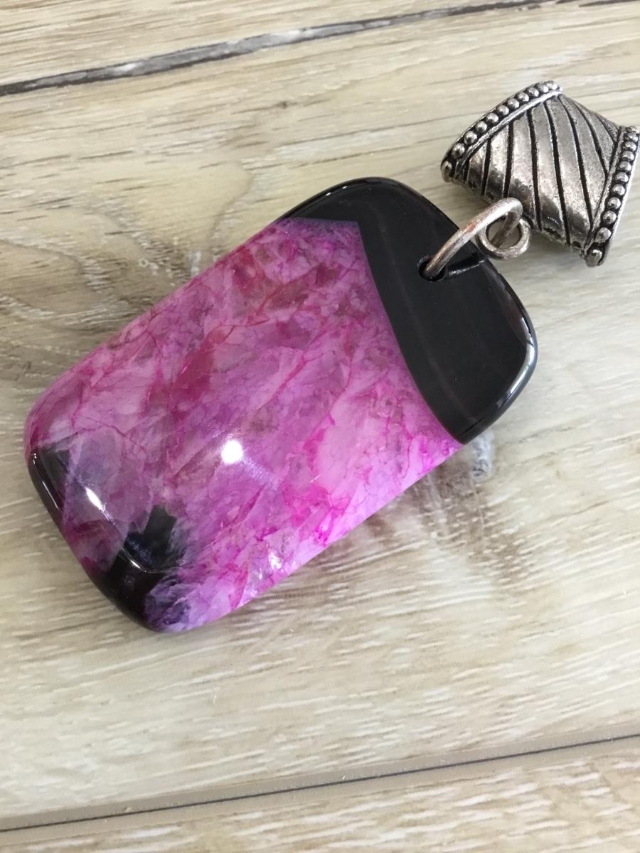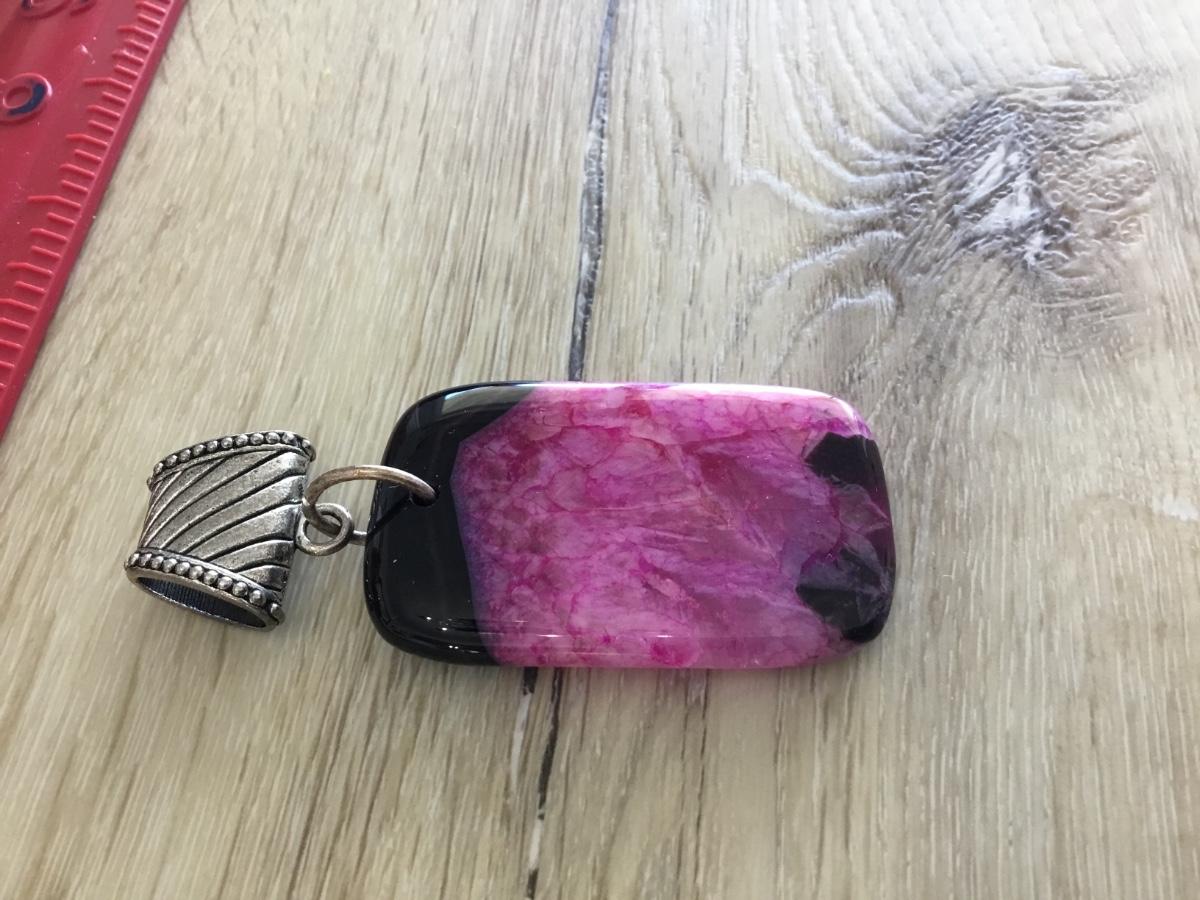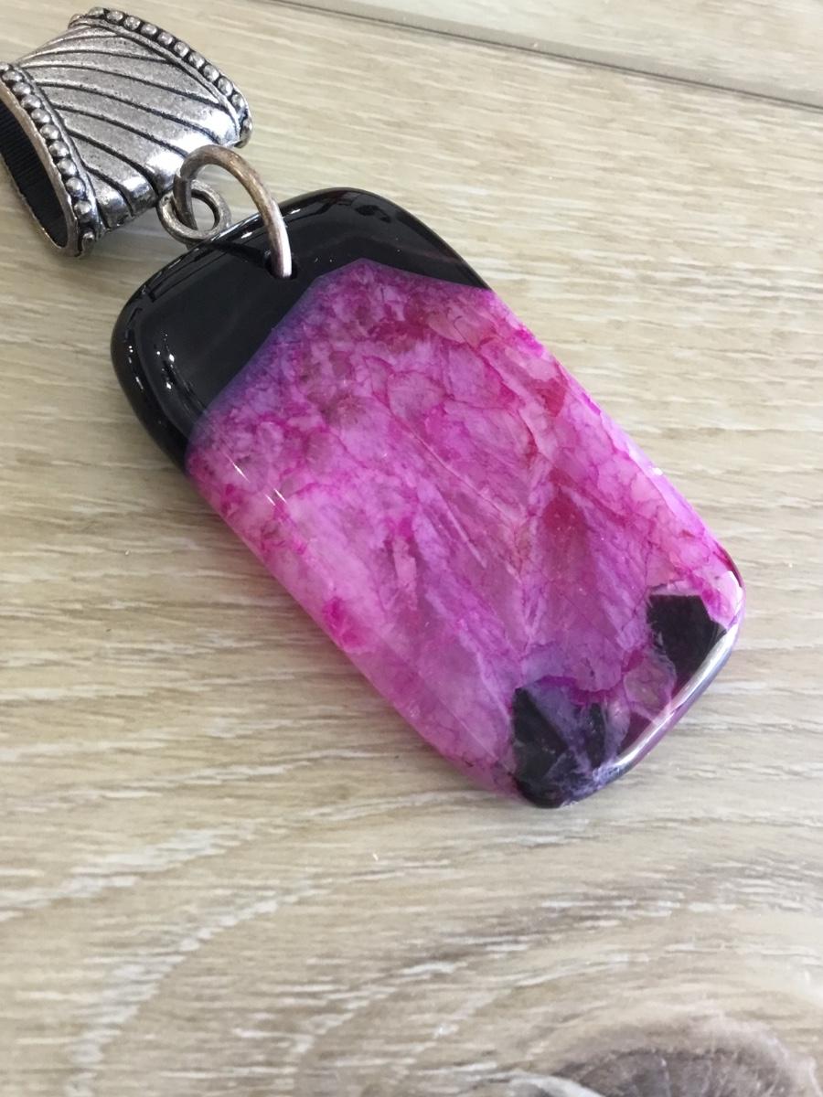 Beautiful, purple and black agate oblong pendant