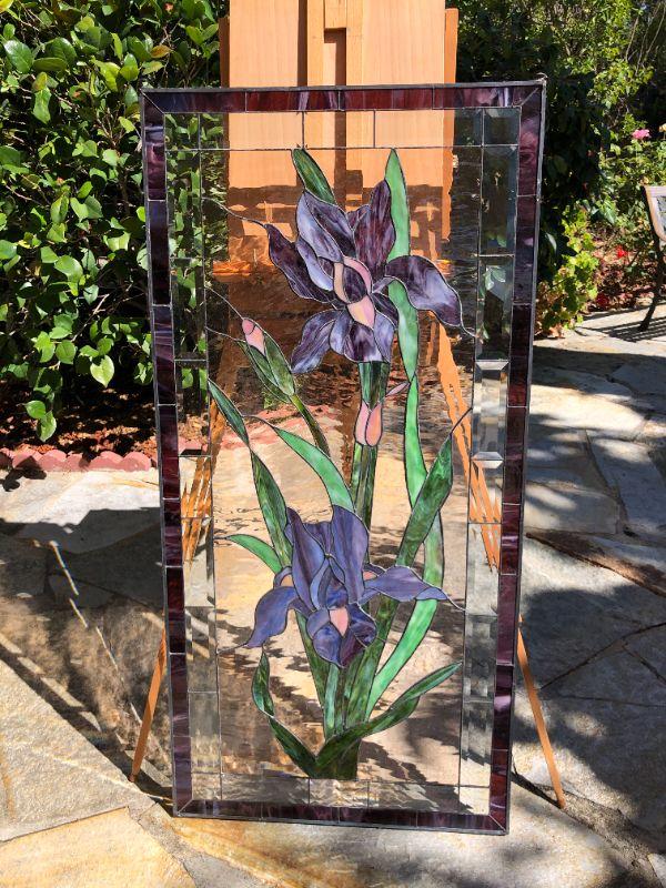 Beautiful Purple Iris Large 47 x 23 Inch Rectangle Stained Glass Window