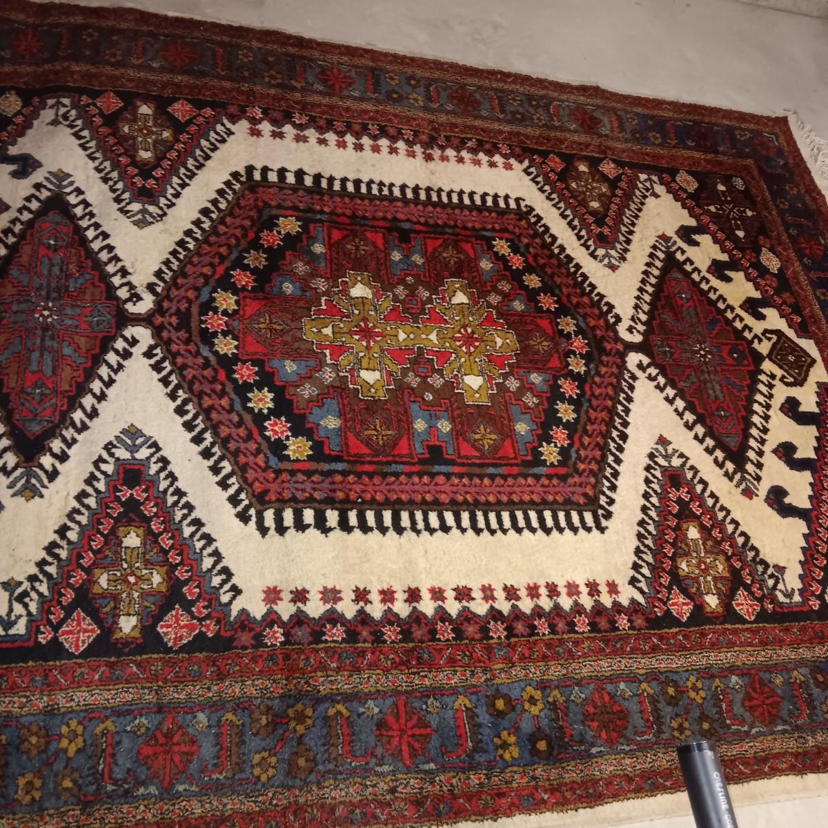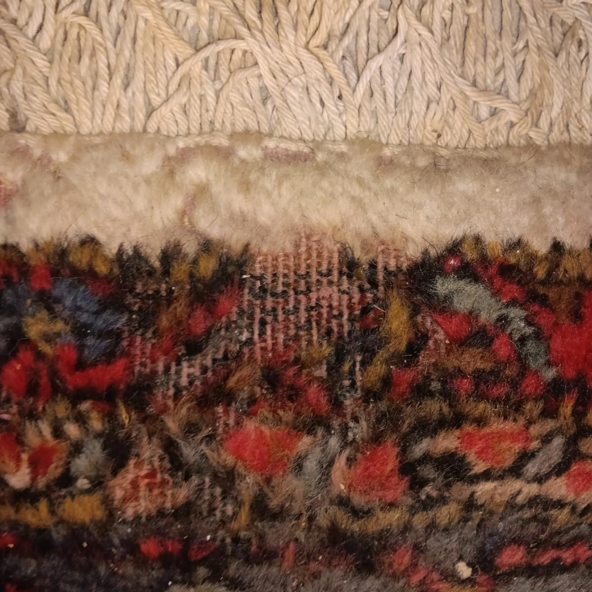 112" X 77" THERE ARE SOME SMALL AREAS WHERE THE MOTHS? HAVE ENJOYED THEMSELVES. IT'S HARD TO SEE UNLESS YOU LOOK REAL CLOSE