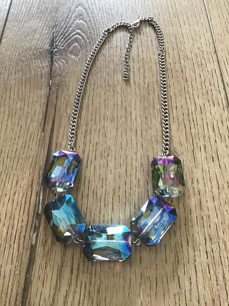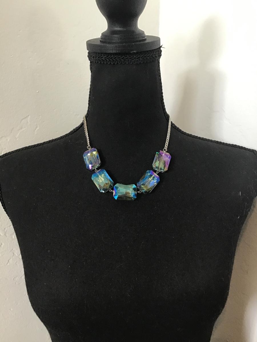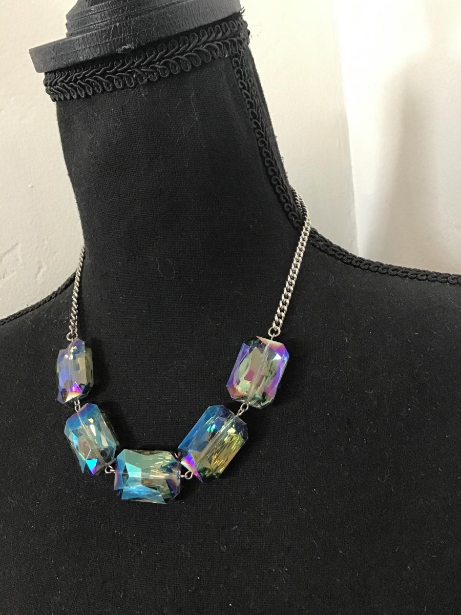 Beautiful Rainbow faceted, glass or crystal necklace silver toned