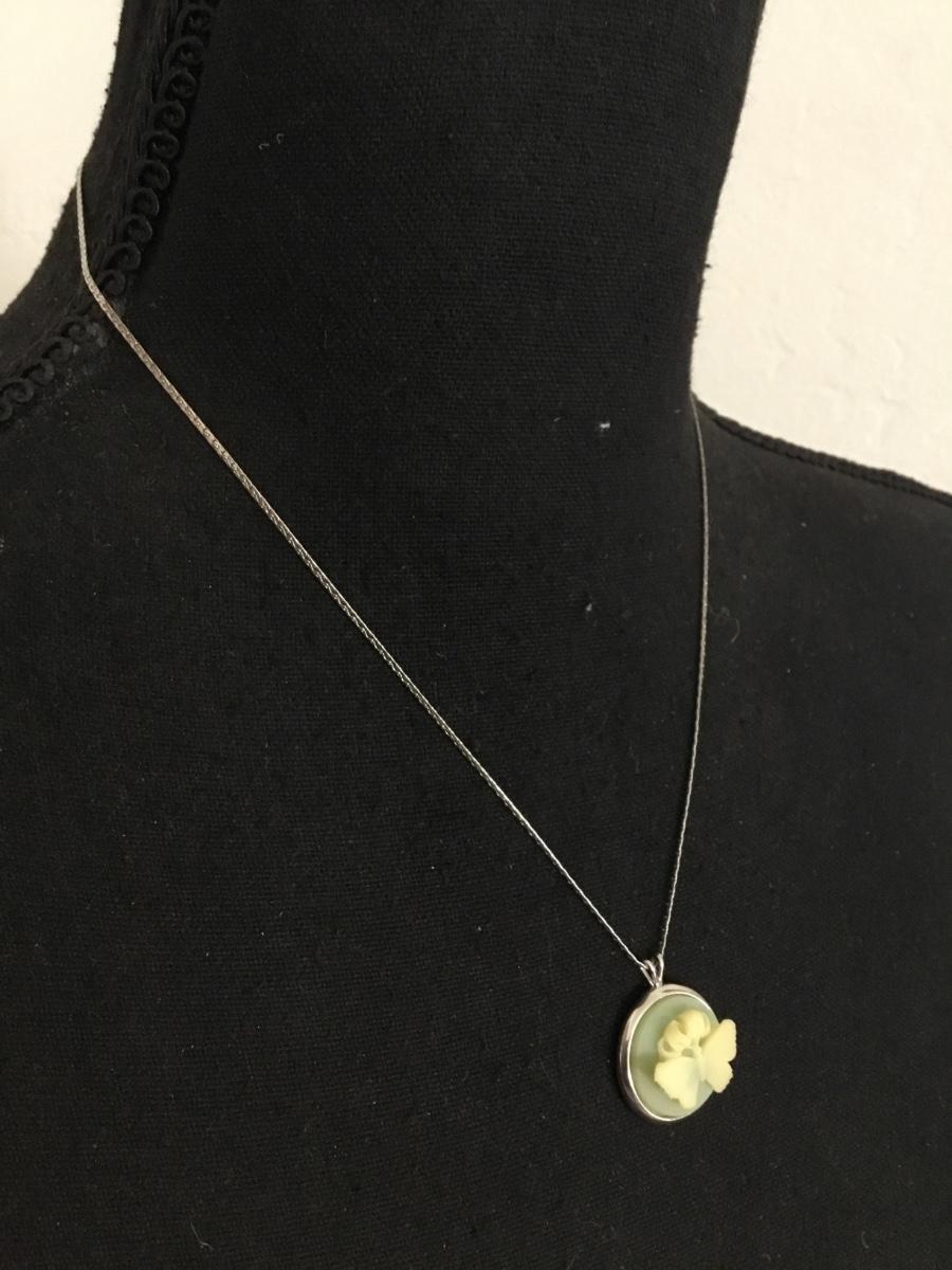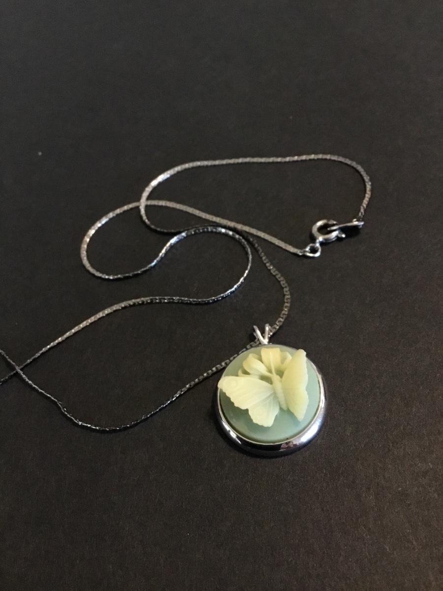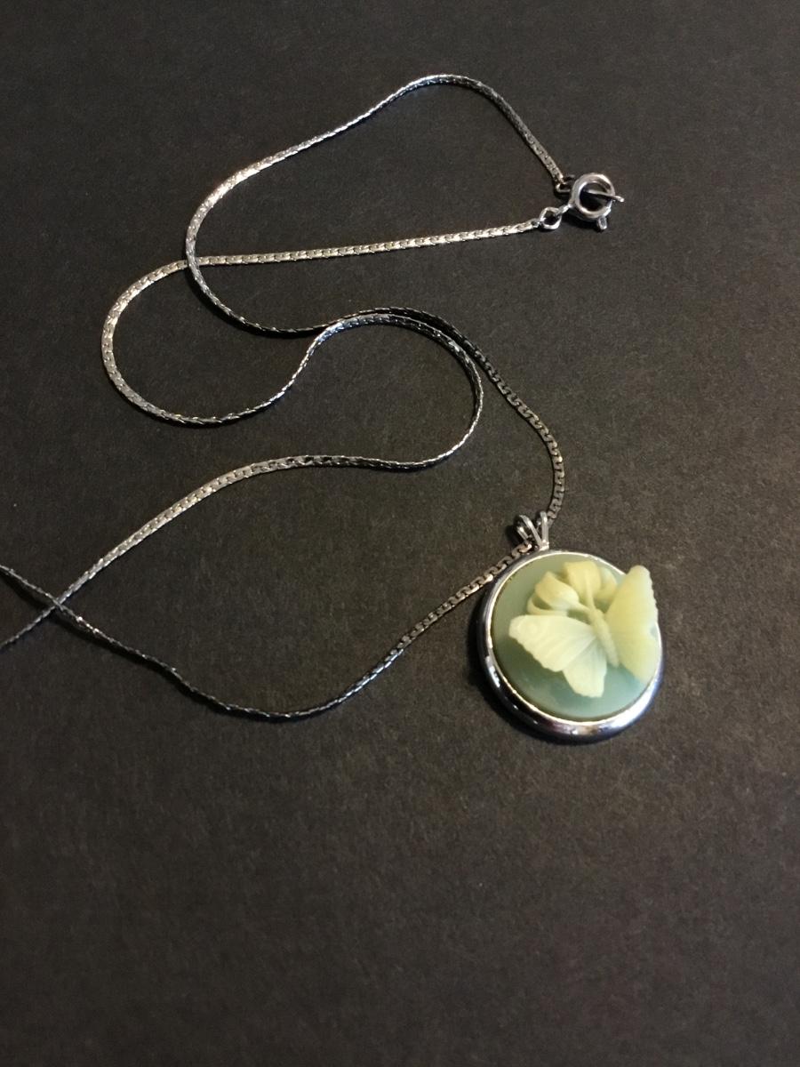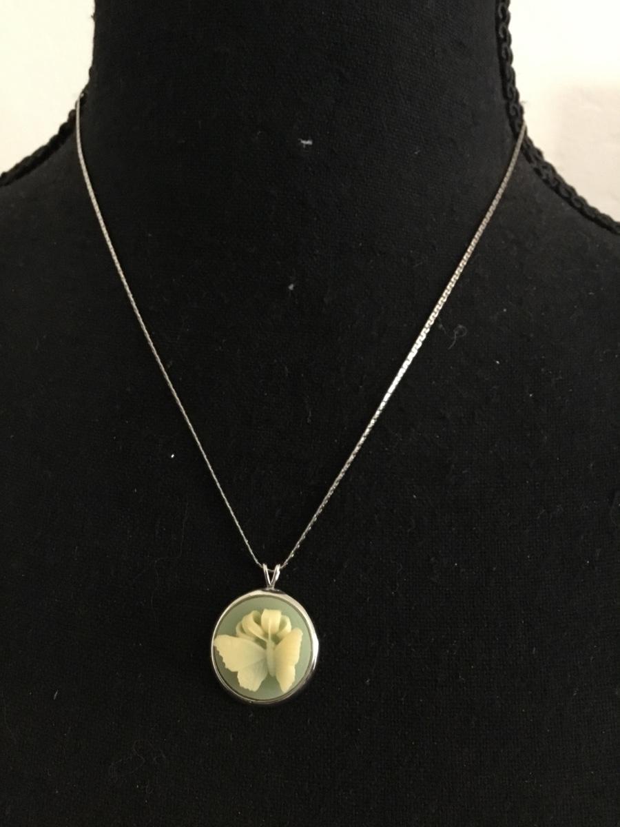 Beautiful, rare vintage, Trifari, 3-D butterfly, cameo necklace, silver tones, excellent condition