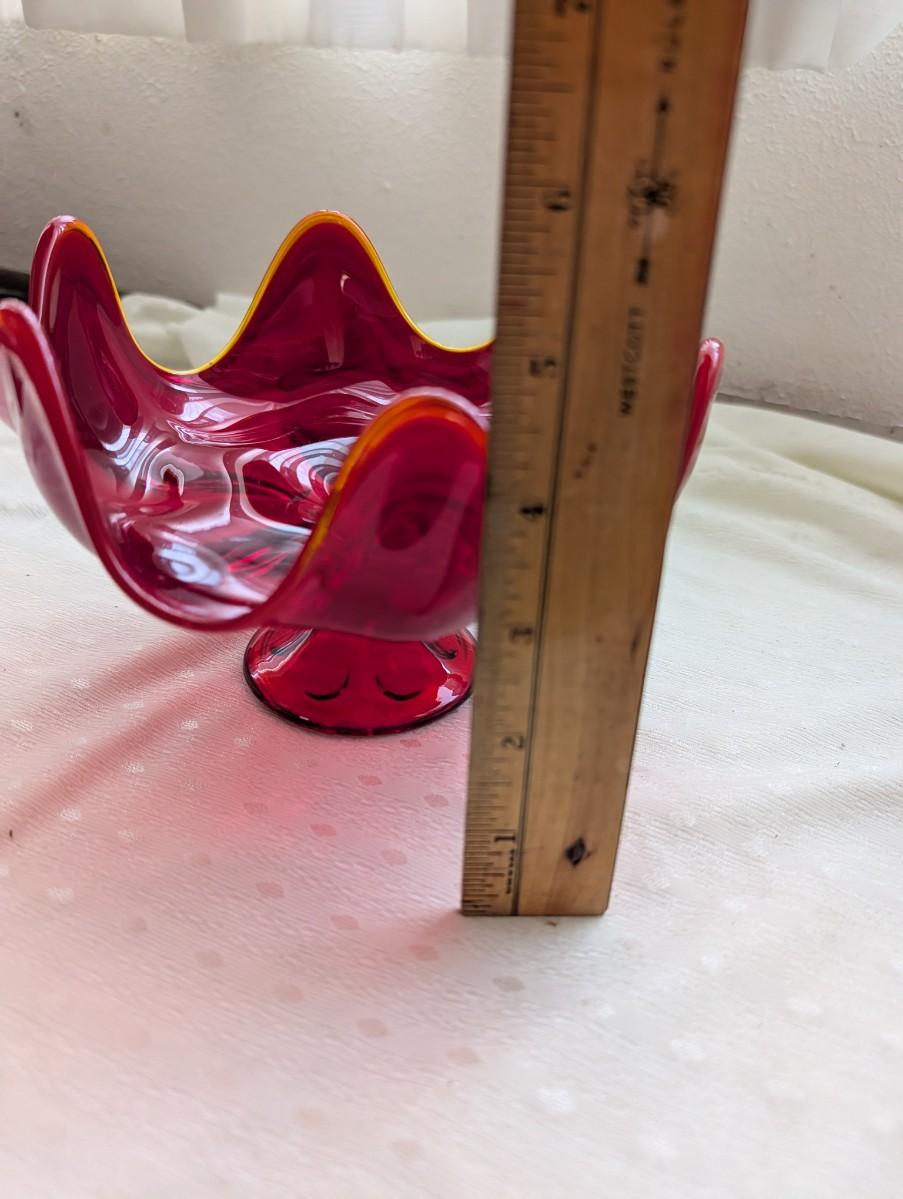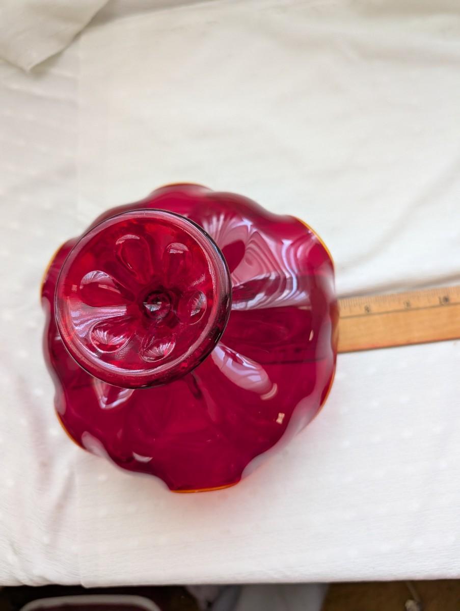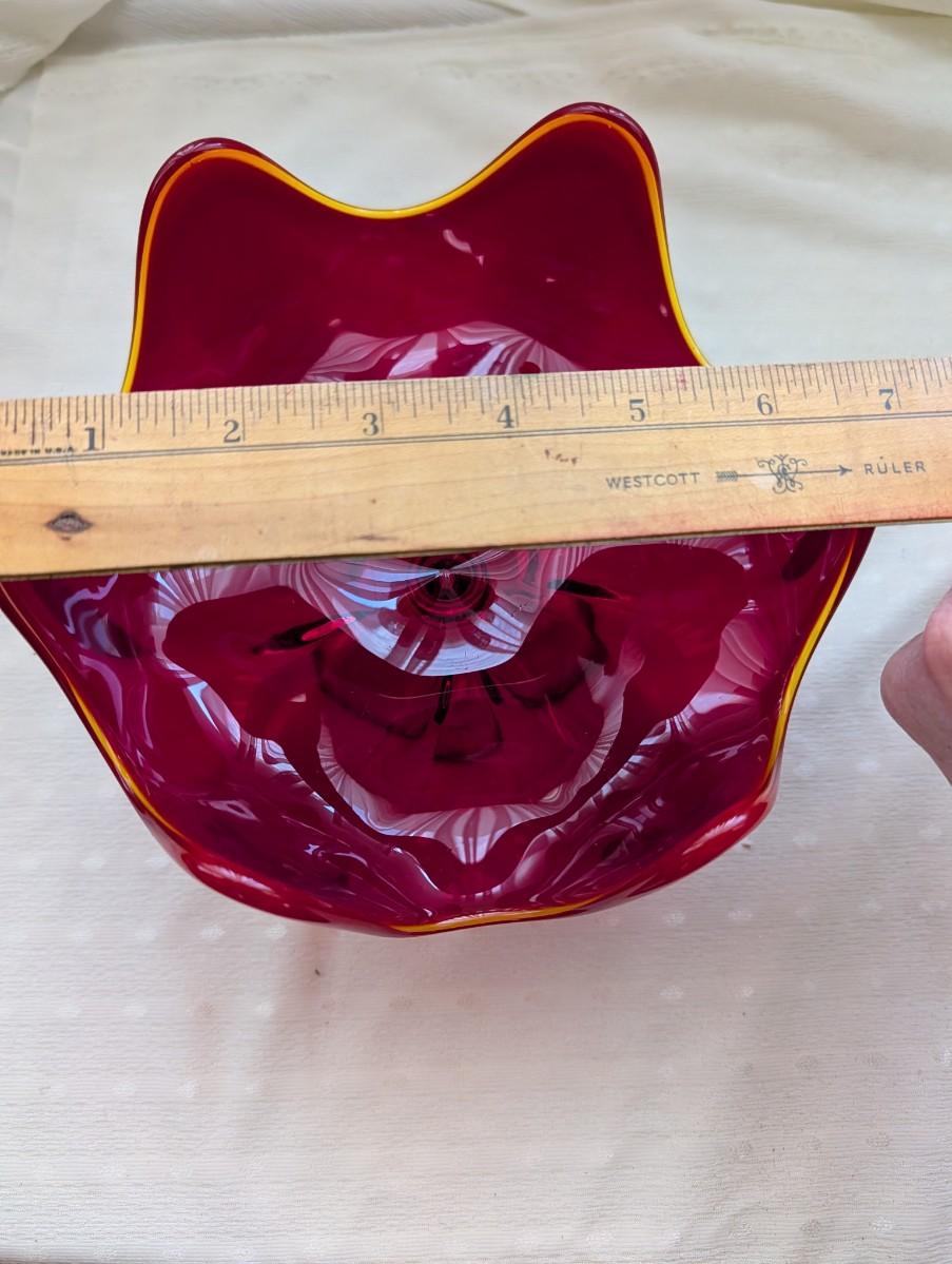 MCM Six Petal Viking Glass Red with Yellow Trim.