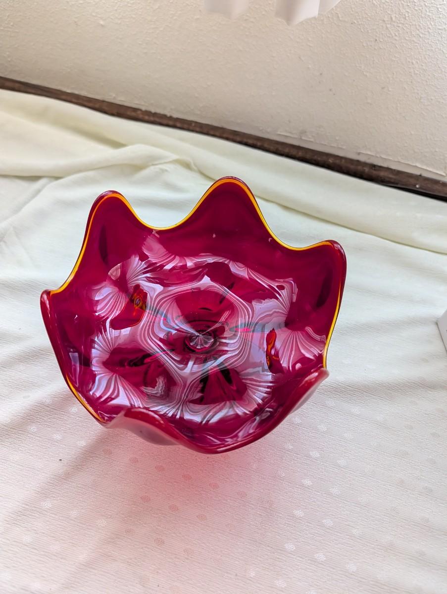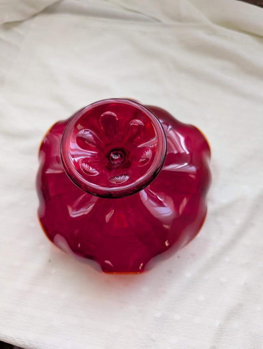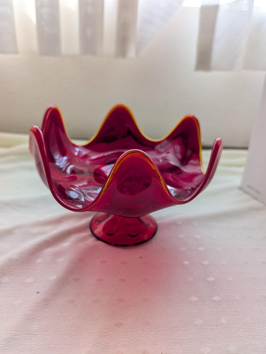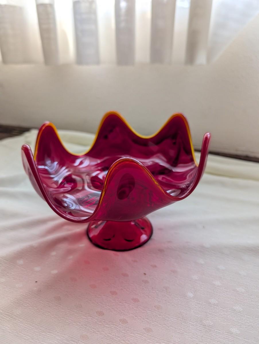 MCM Six Petal Viking Glass Red with Yellow Trim.