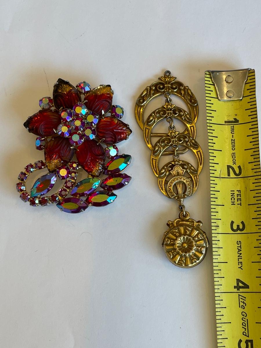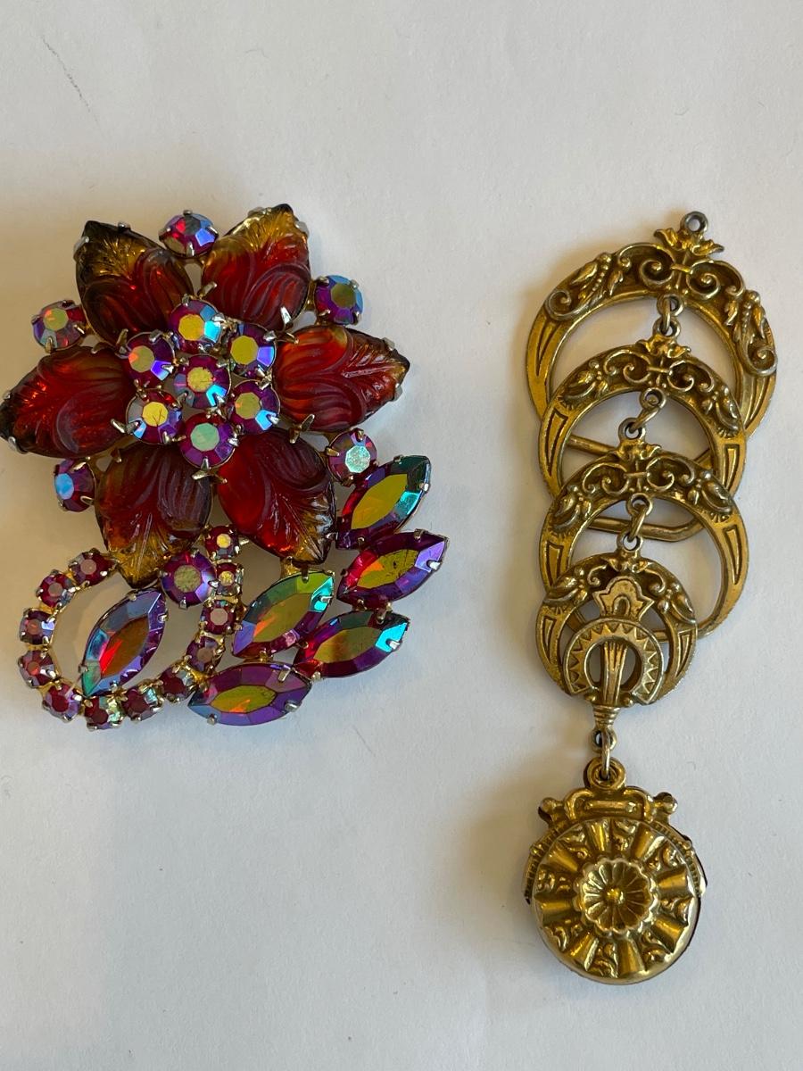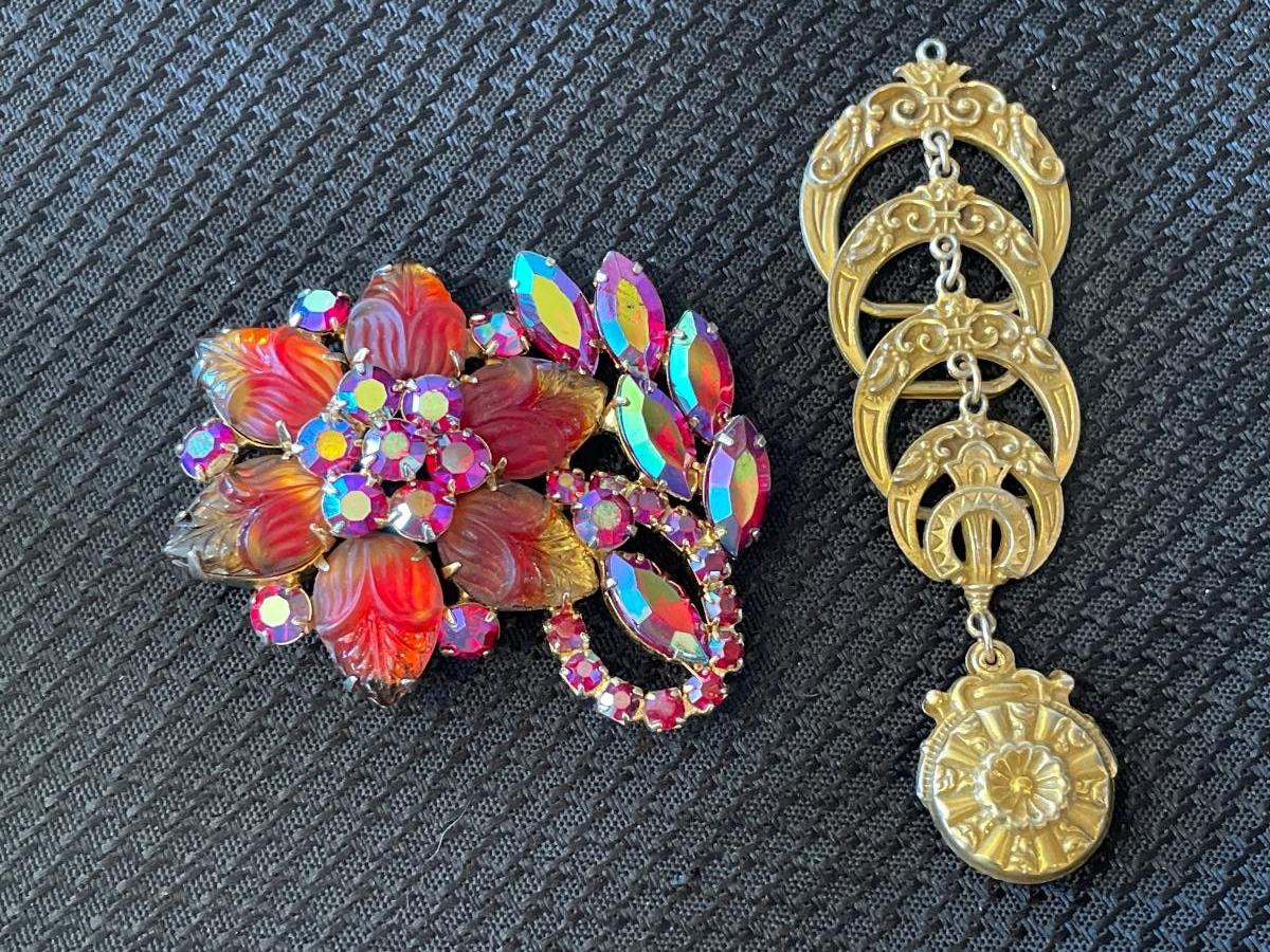 Gold toned dangling charm is missing its top piece, Both are stunning, just need a little TLC
