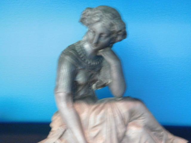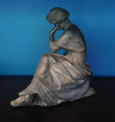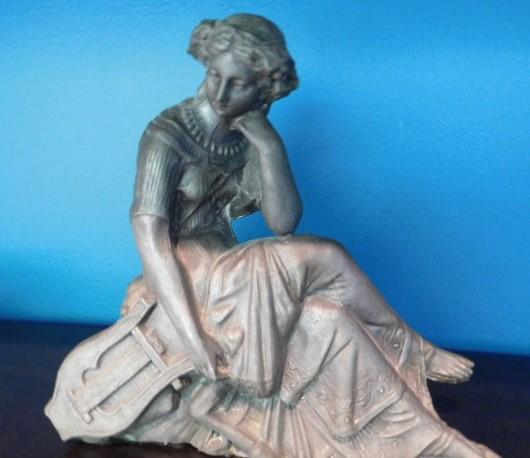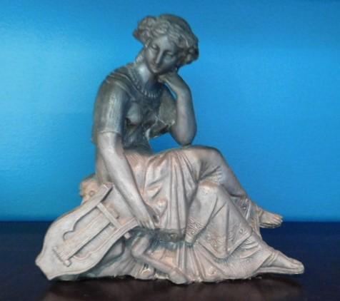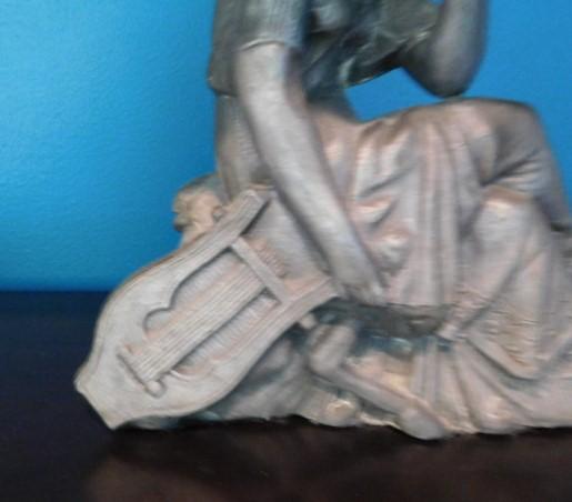 Beautiful Resin Statuette Lady with Lap Harp 9"x8"