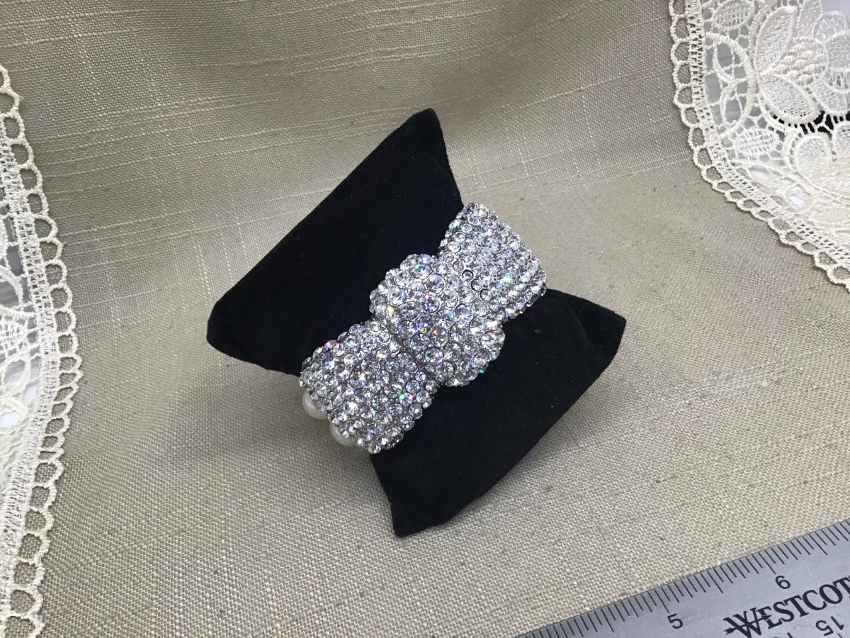 Beautiful Rhinestone Bow With Faux Pearl Bracelet