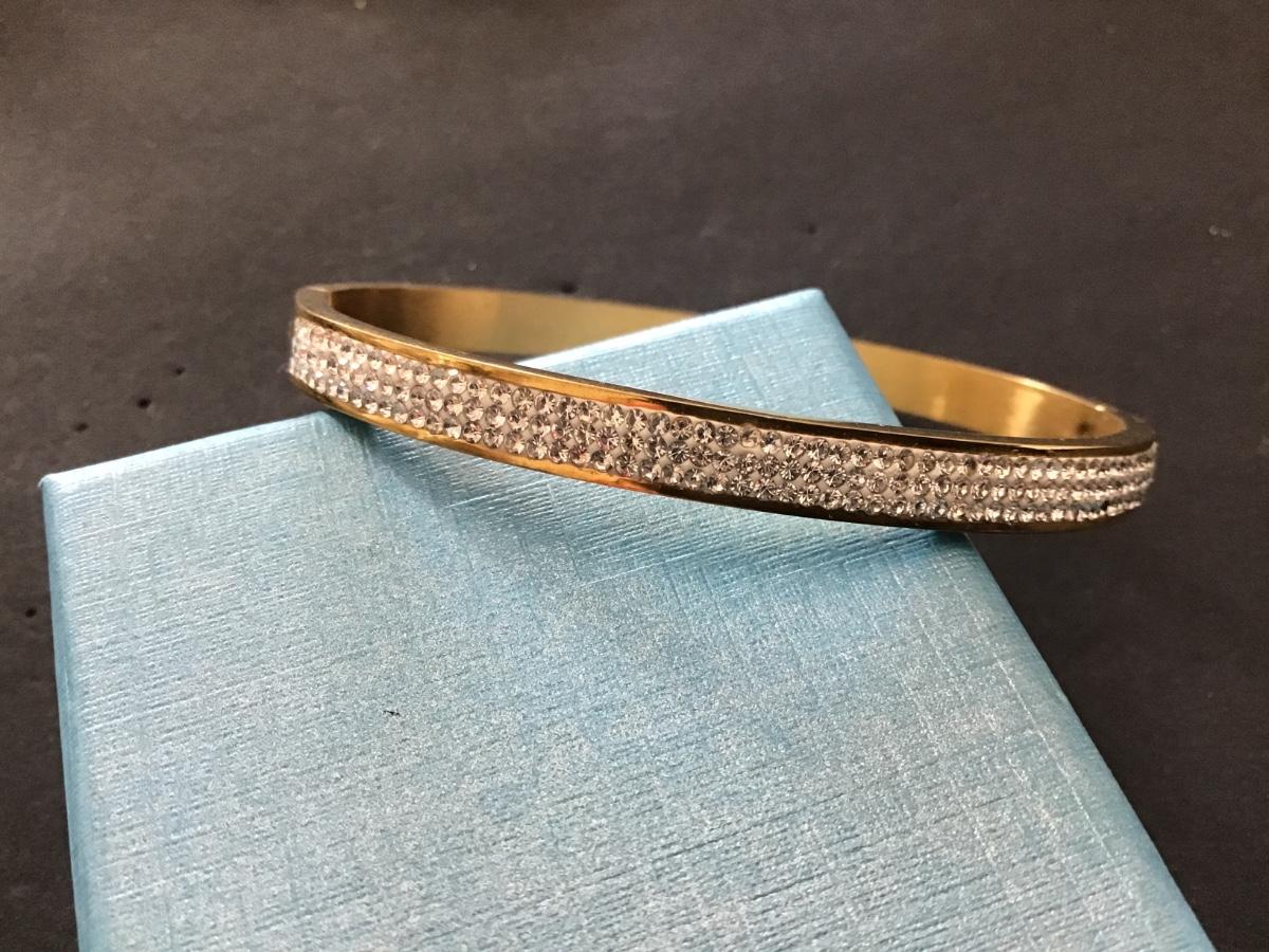 Beautiful Rhinestone Hinged Gold Tone Fashion Bracelet