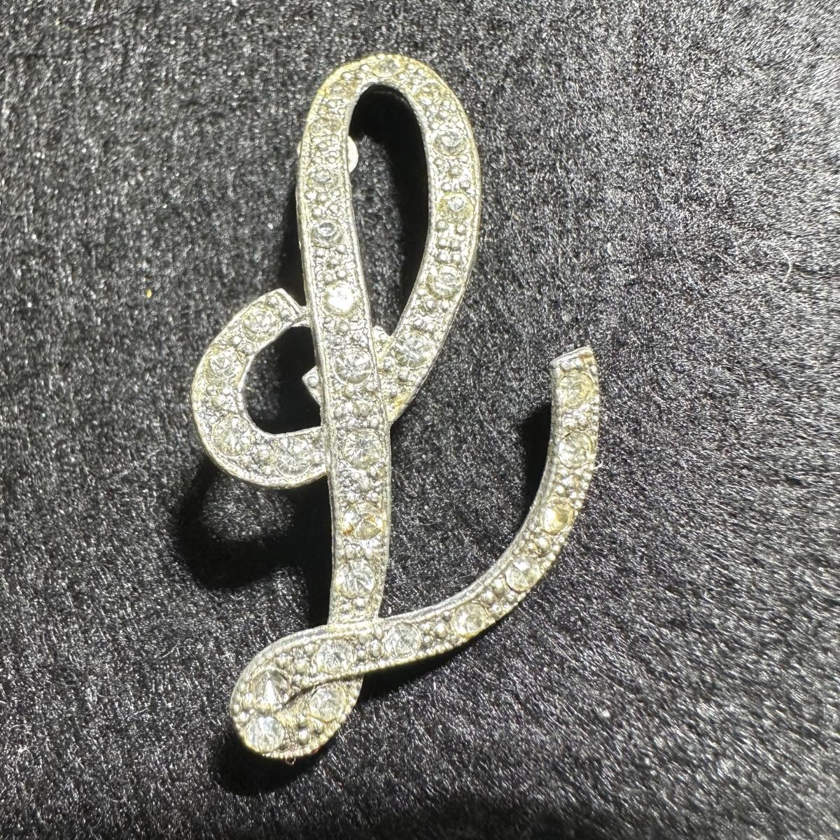Beautiful rhinestone L monogram brooch