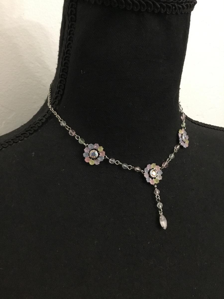 Beautiful, rhinestone multicolored Silver-tone necklace