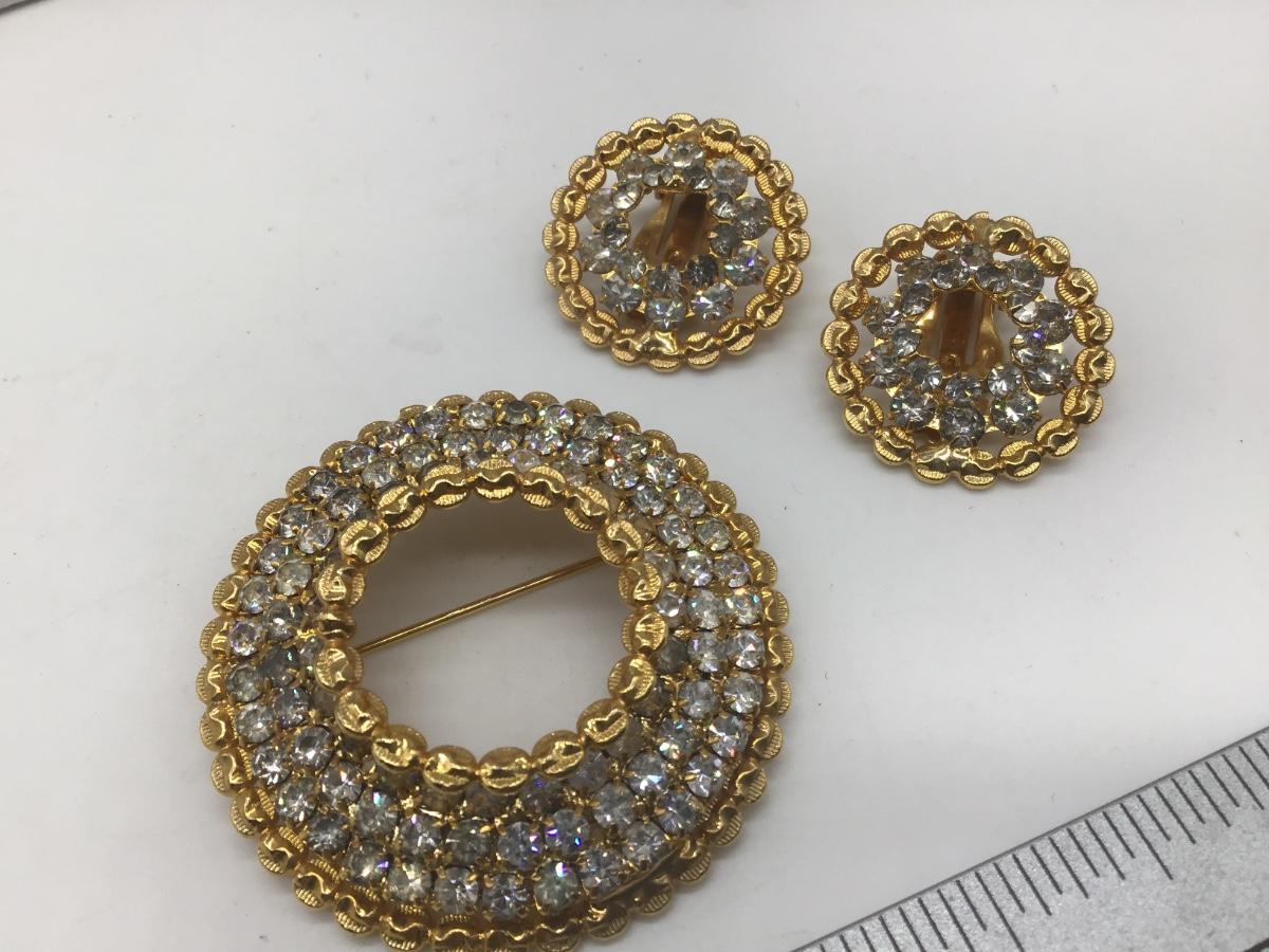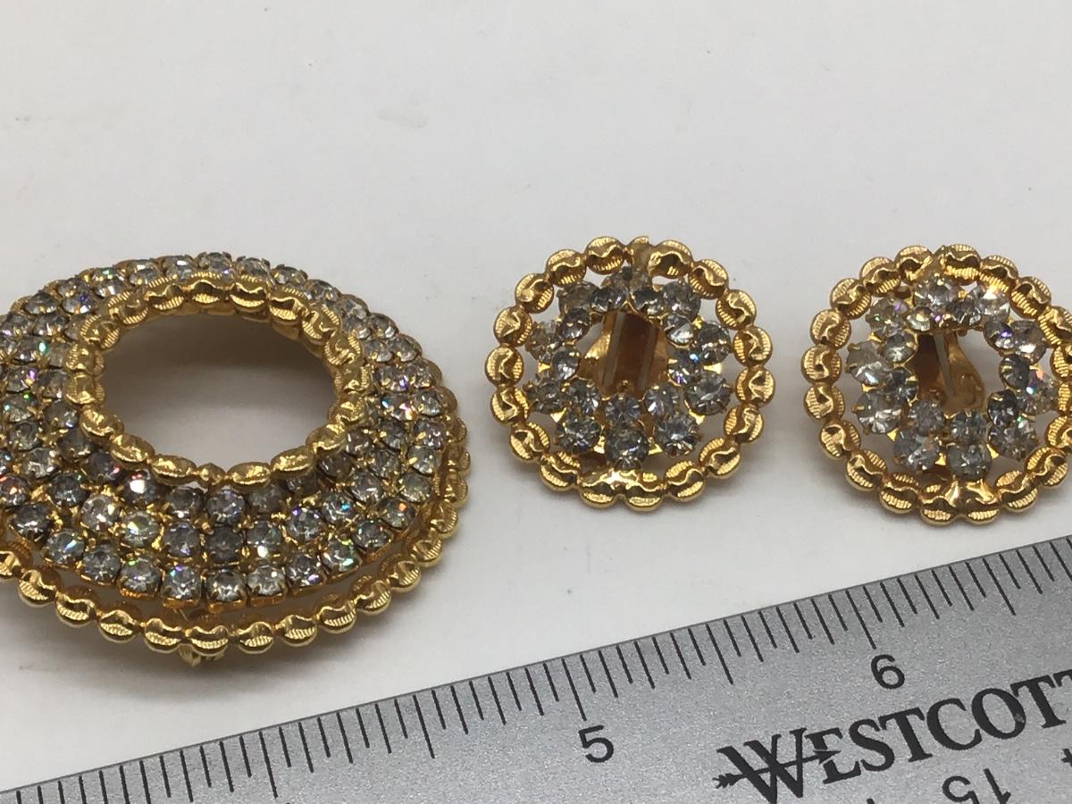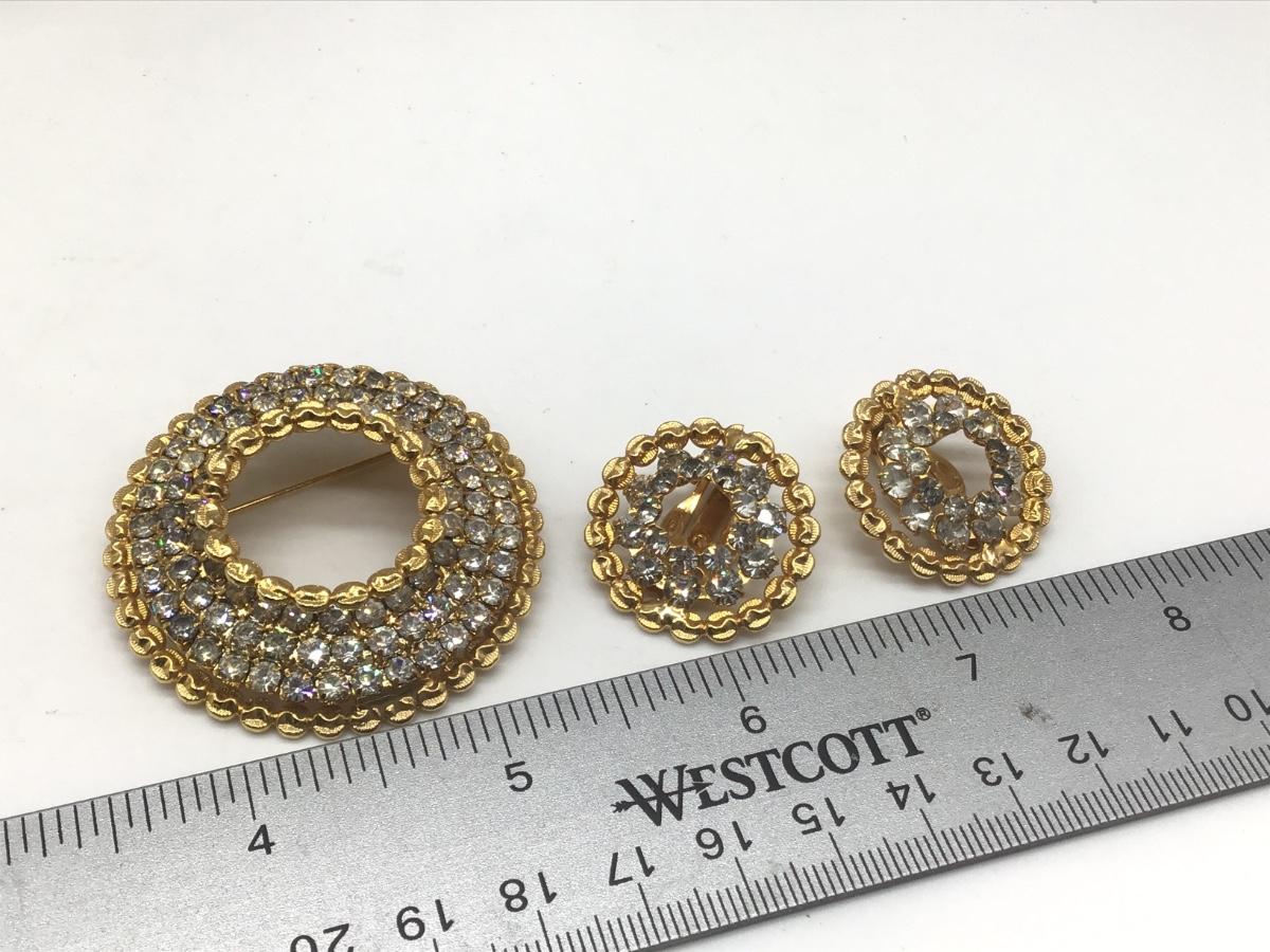 Beautiful Rhinestone Stone Brooch With Matching Earrings