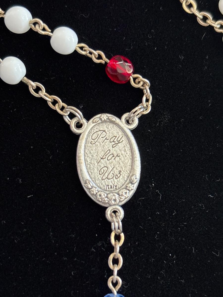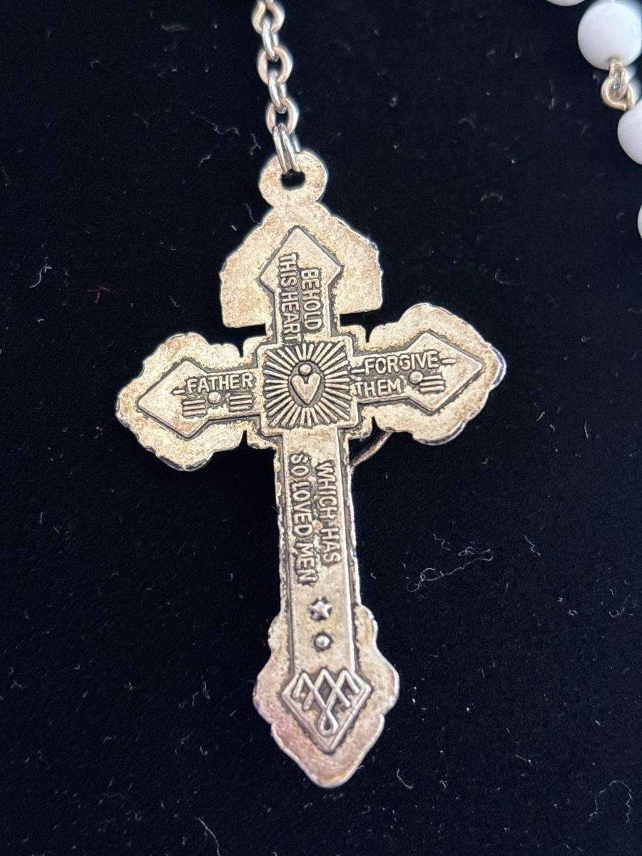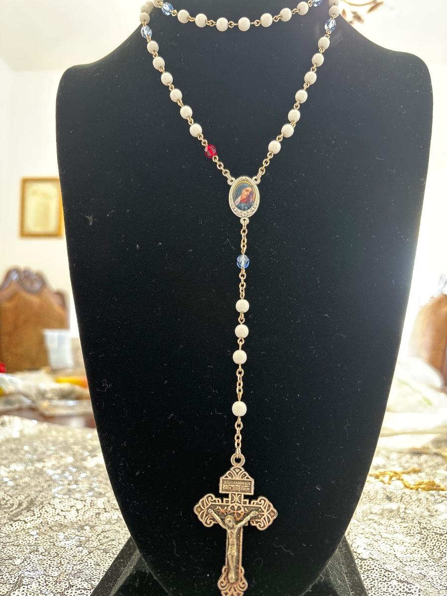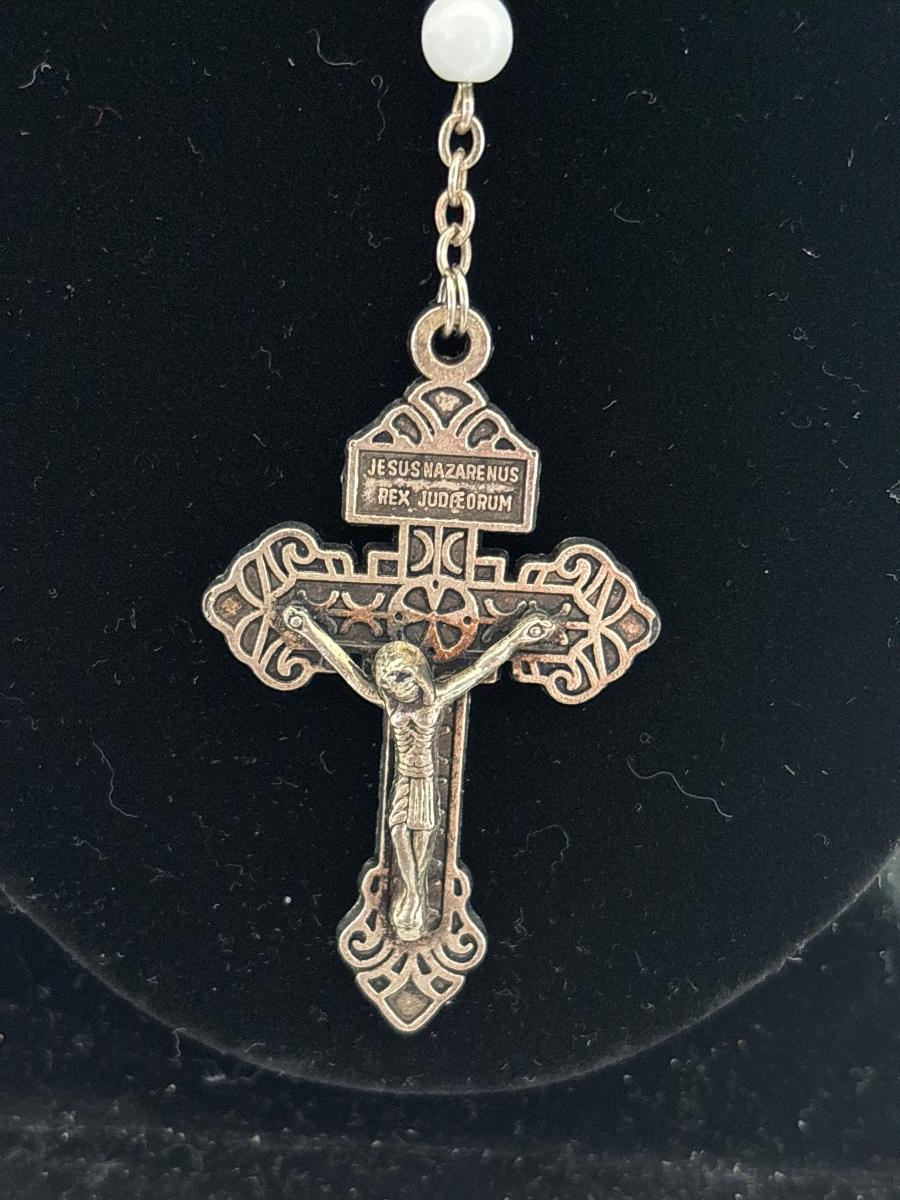 Beautiful rosary with Milk, glass, crystal beads, Italy, pendant, and crucifix cross pendant