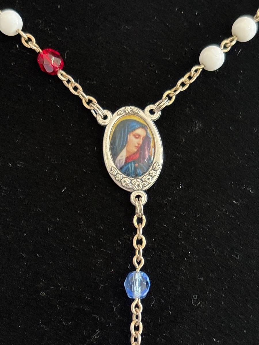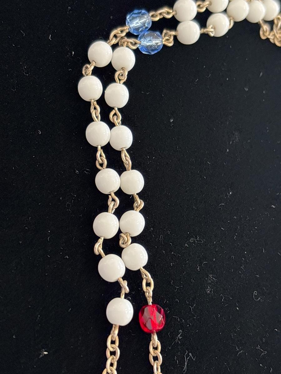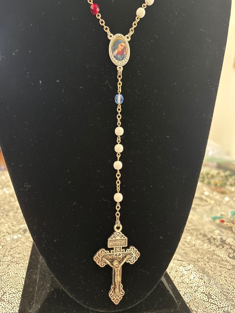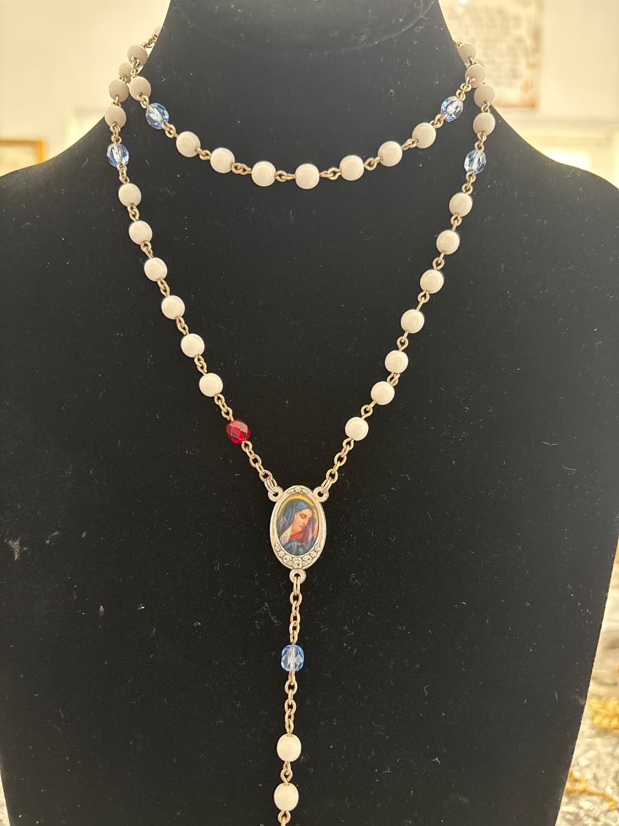 Beautiful rosary with Milk, glass, crystal beads, Italy, pendant, and crucifix cross pendant