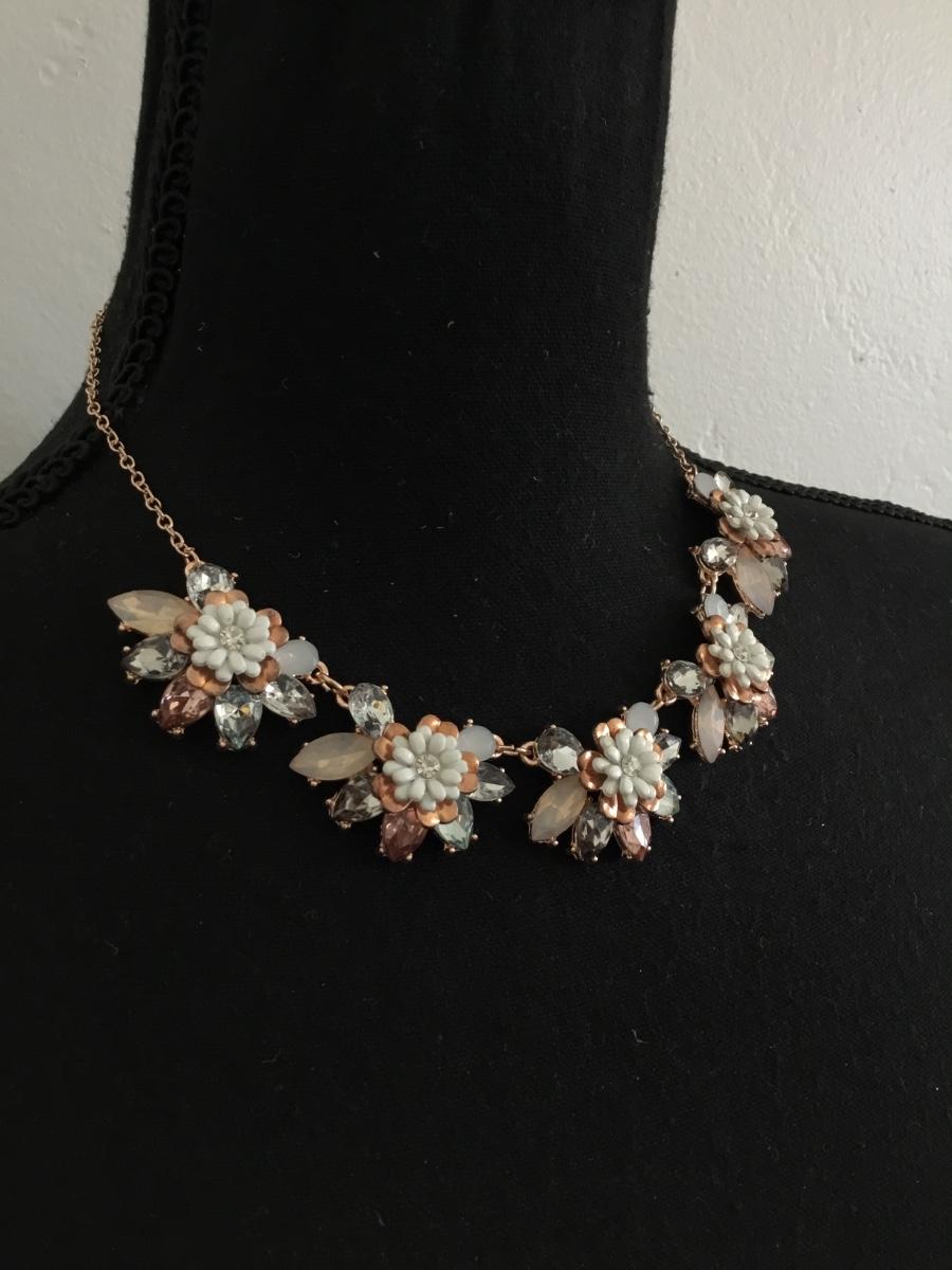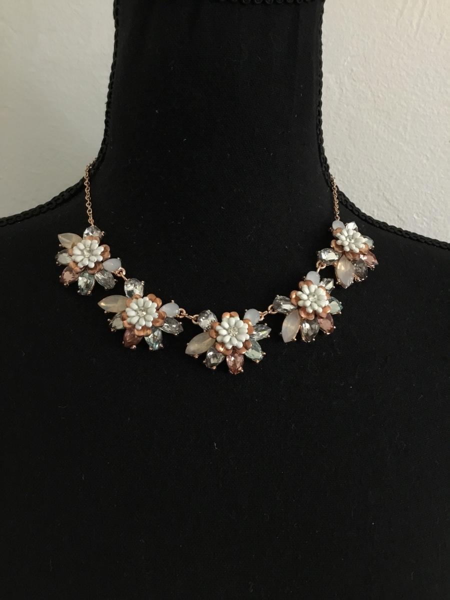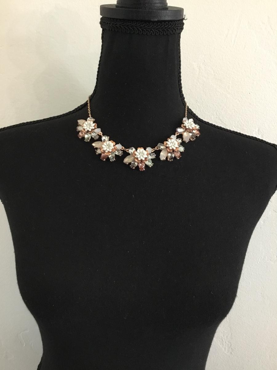 Beautiful rose, gold, rhinestone, white flower statement, necklace